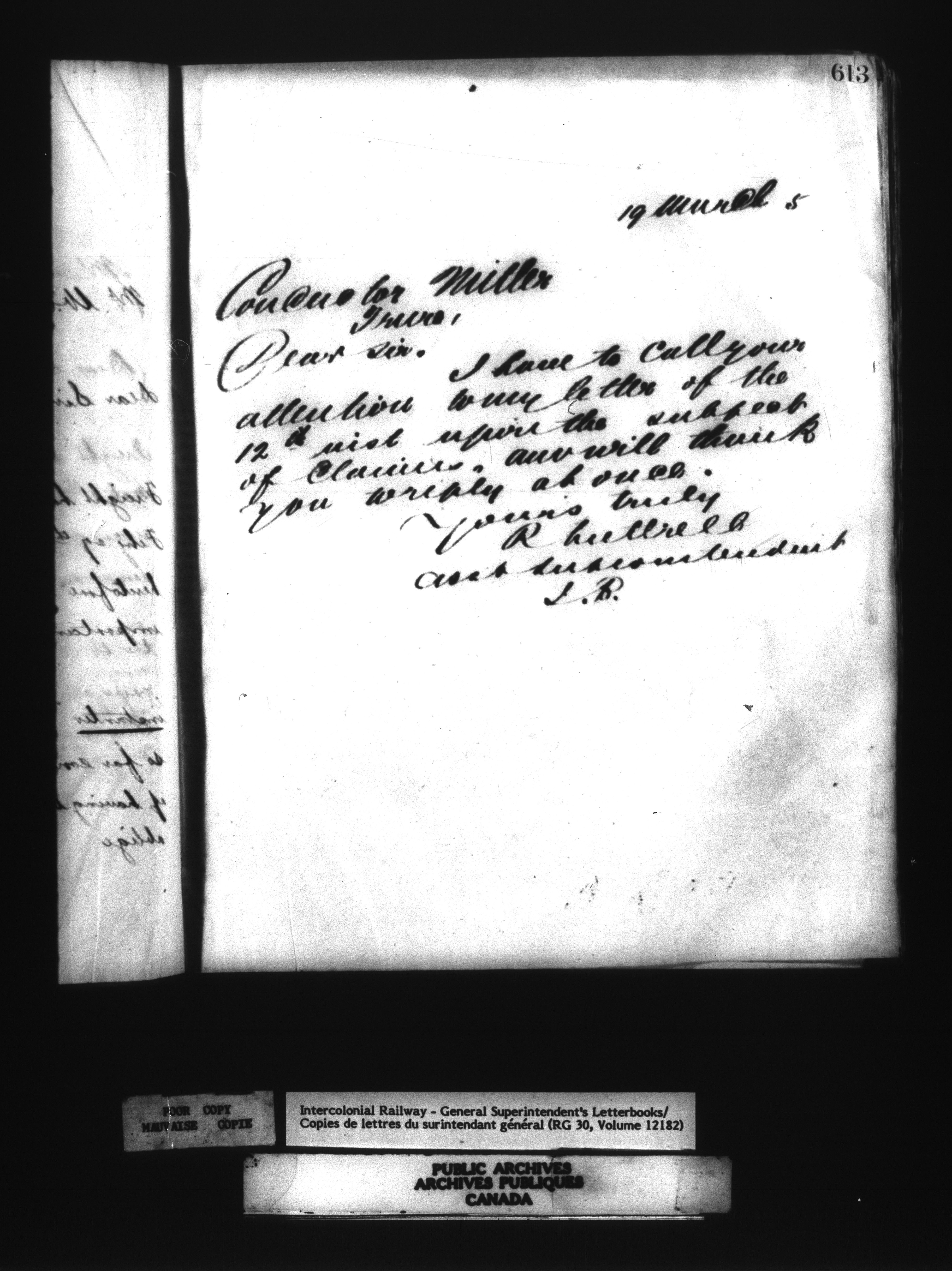 Canadian Government Railways : Office of the Superintendent, Correspondence - 12508