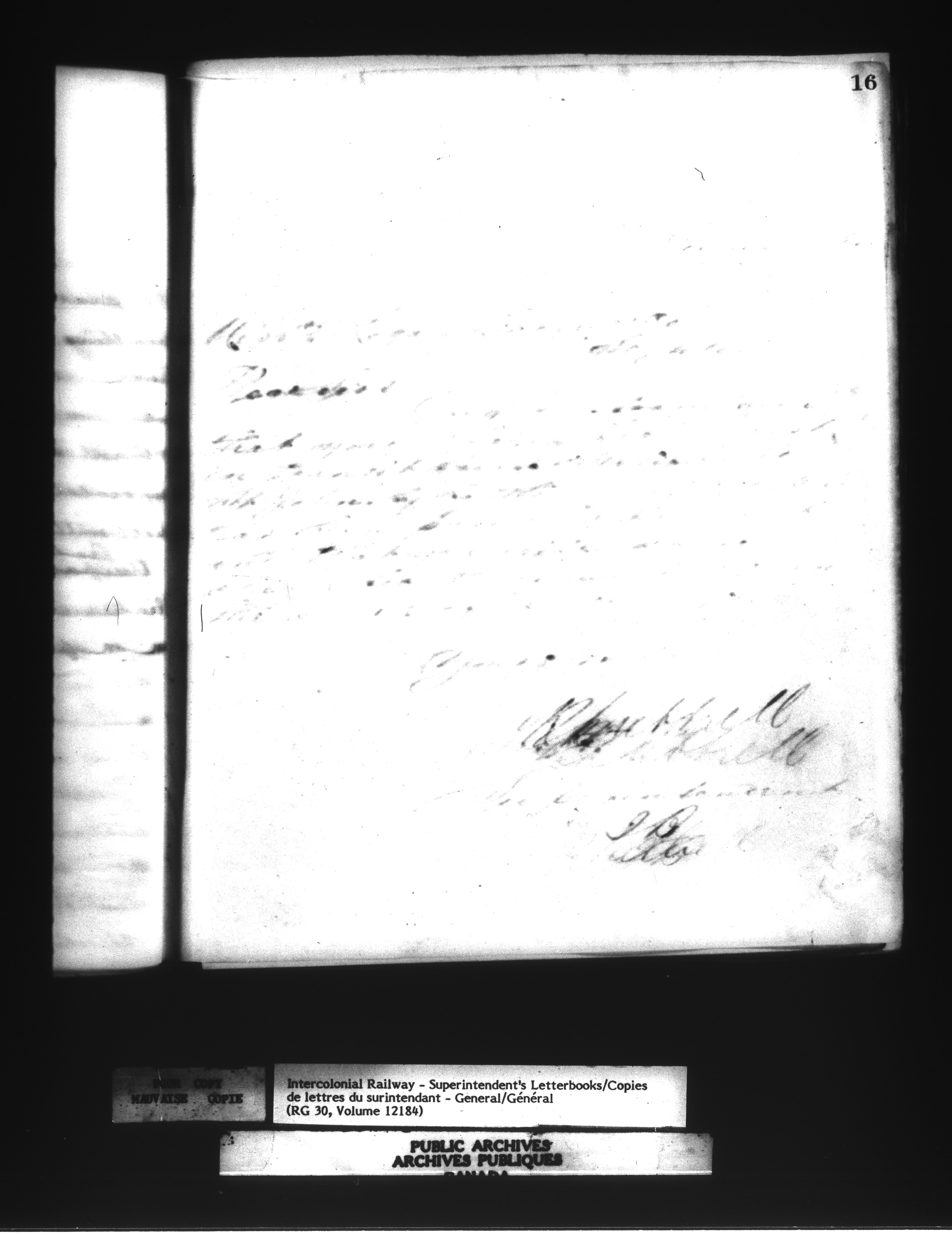 Canadian Government Railways : Office of the Superintendent, Correspondence - 12509