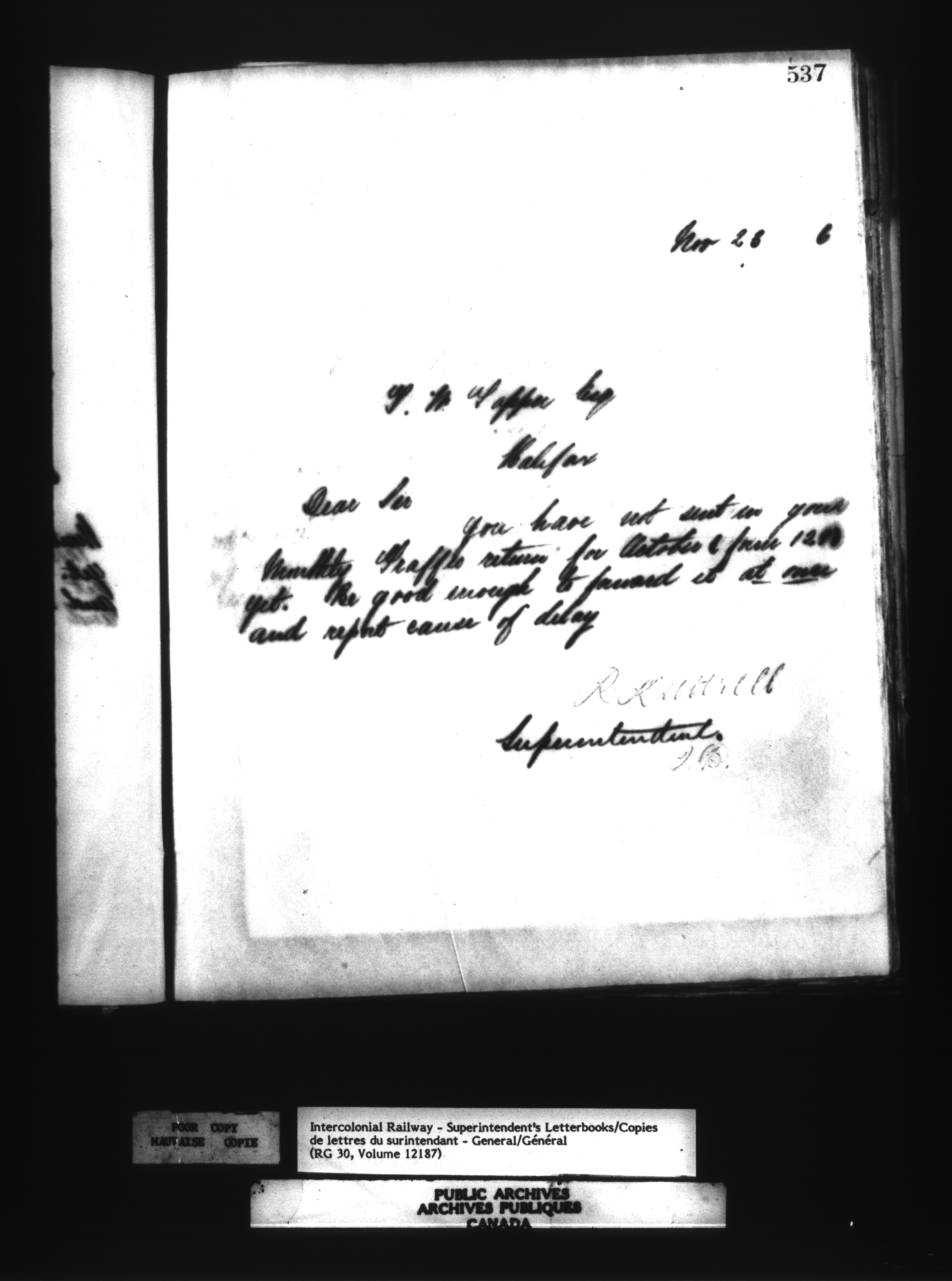 Canadian Government Railways : Office of the Superintendent, Correspondence - 12511