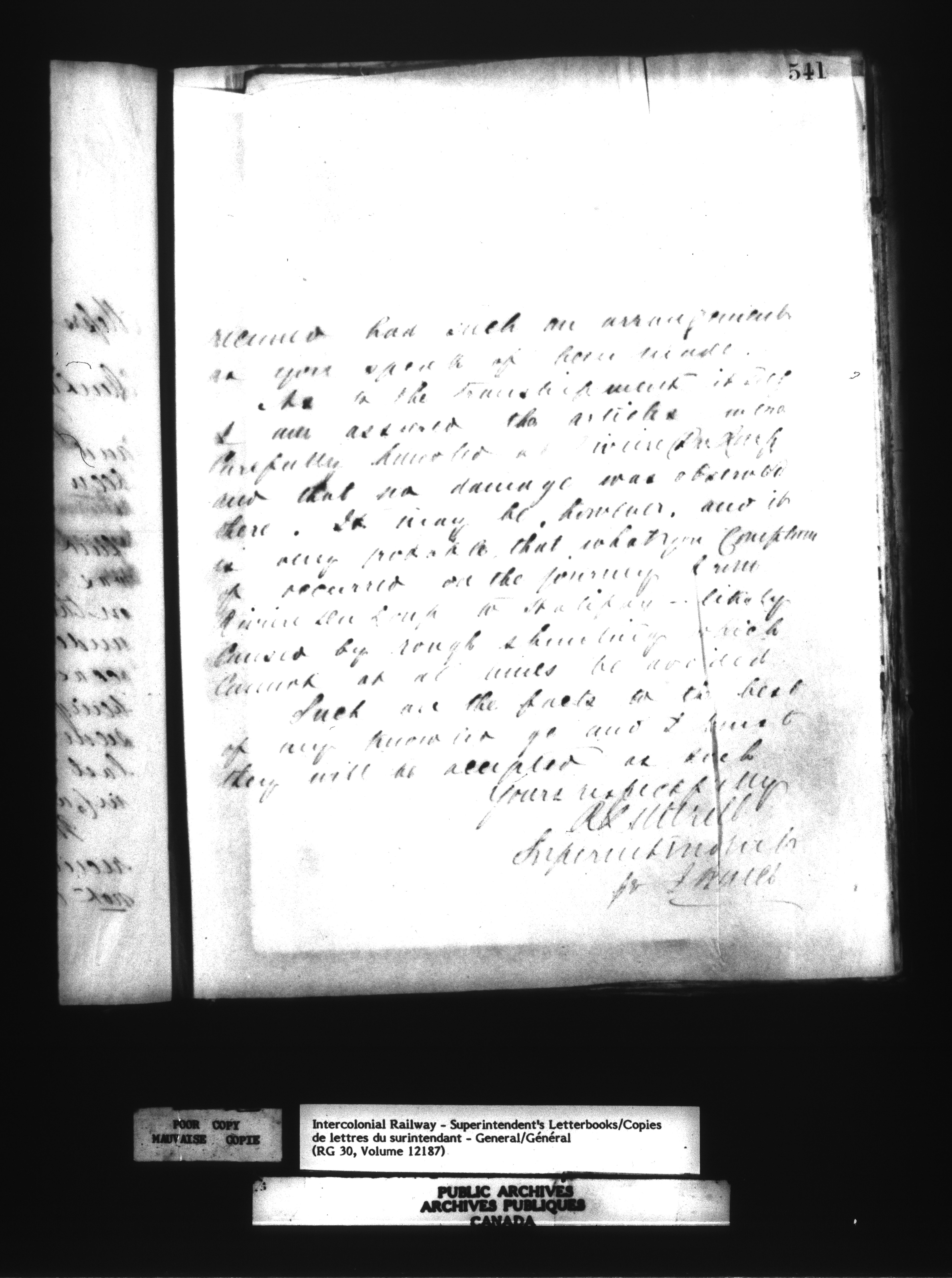 Canadian Government Railways : Office of the Superintendent, Correspondence - 12511