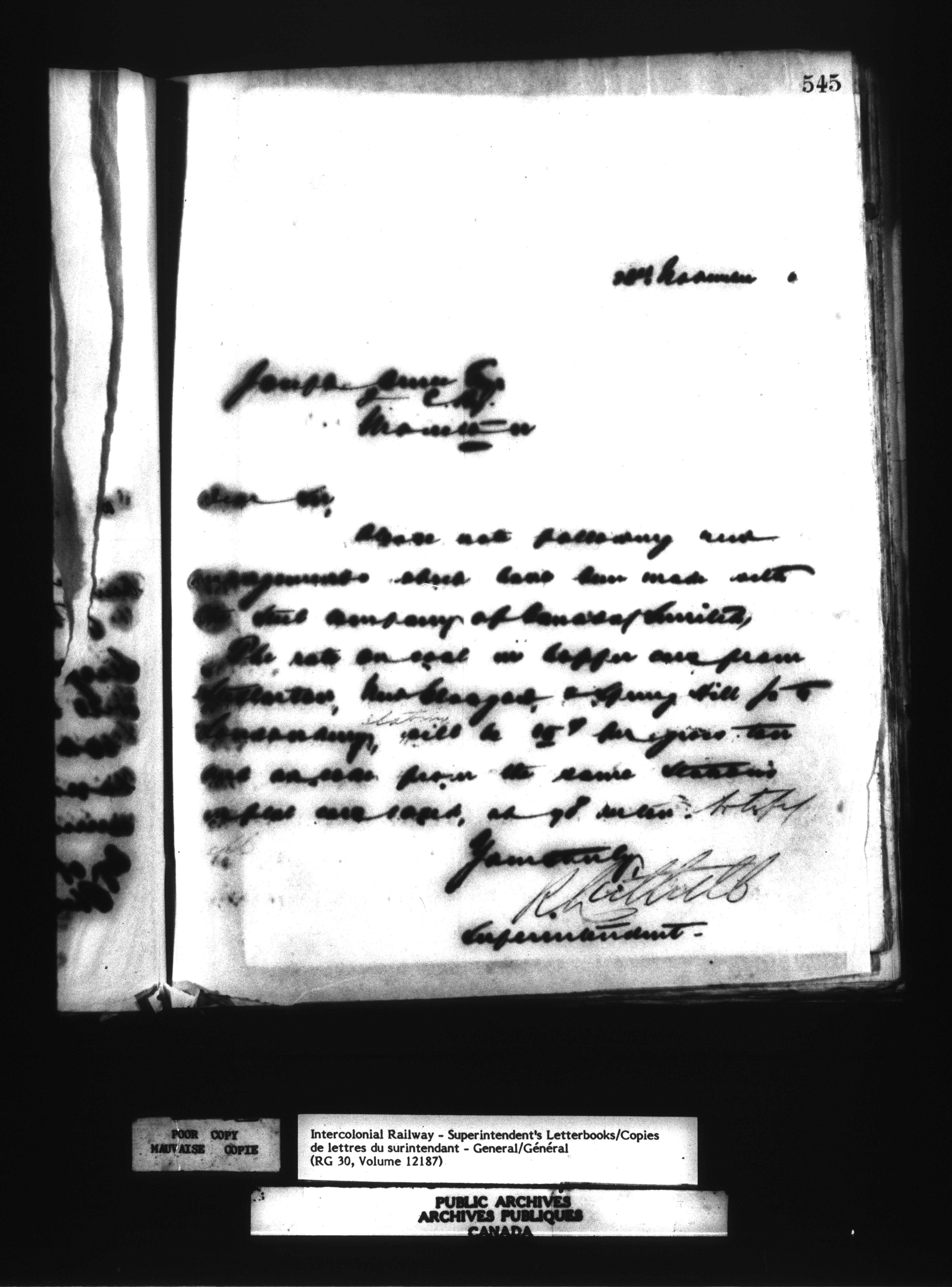 Canadian Government Railways : Office of the Superintendent, Correspondence - 12511
