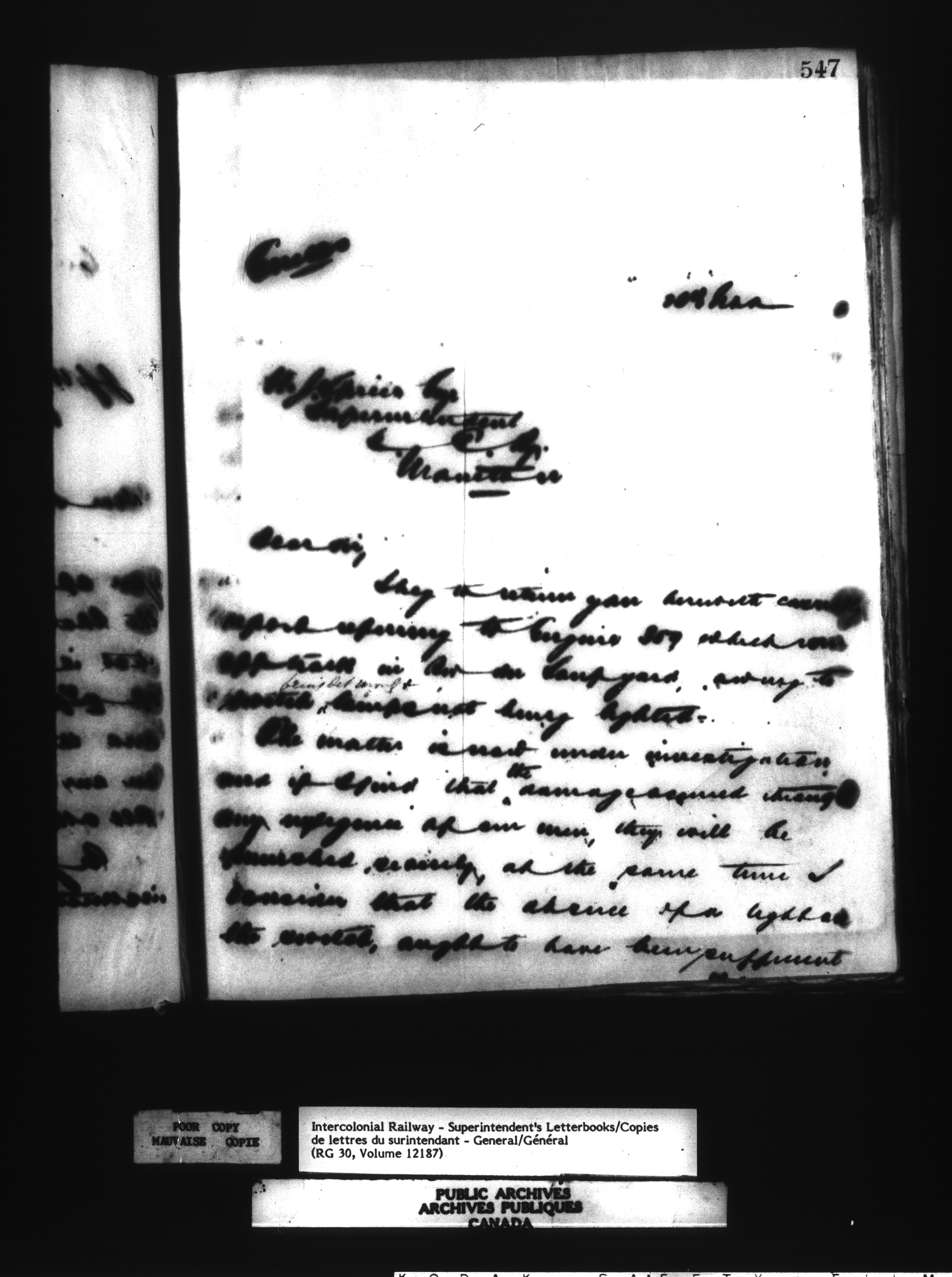 Canadian Government Railways : Office of the Superintendent, Correspondence - 12511