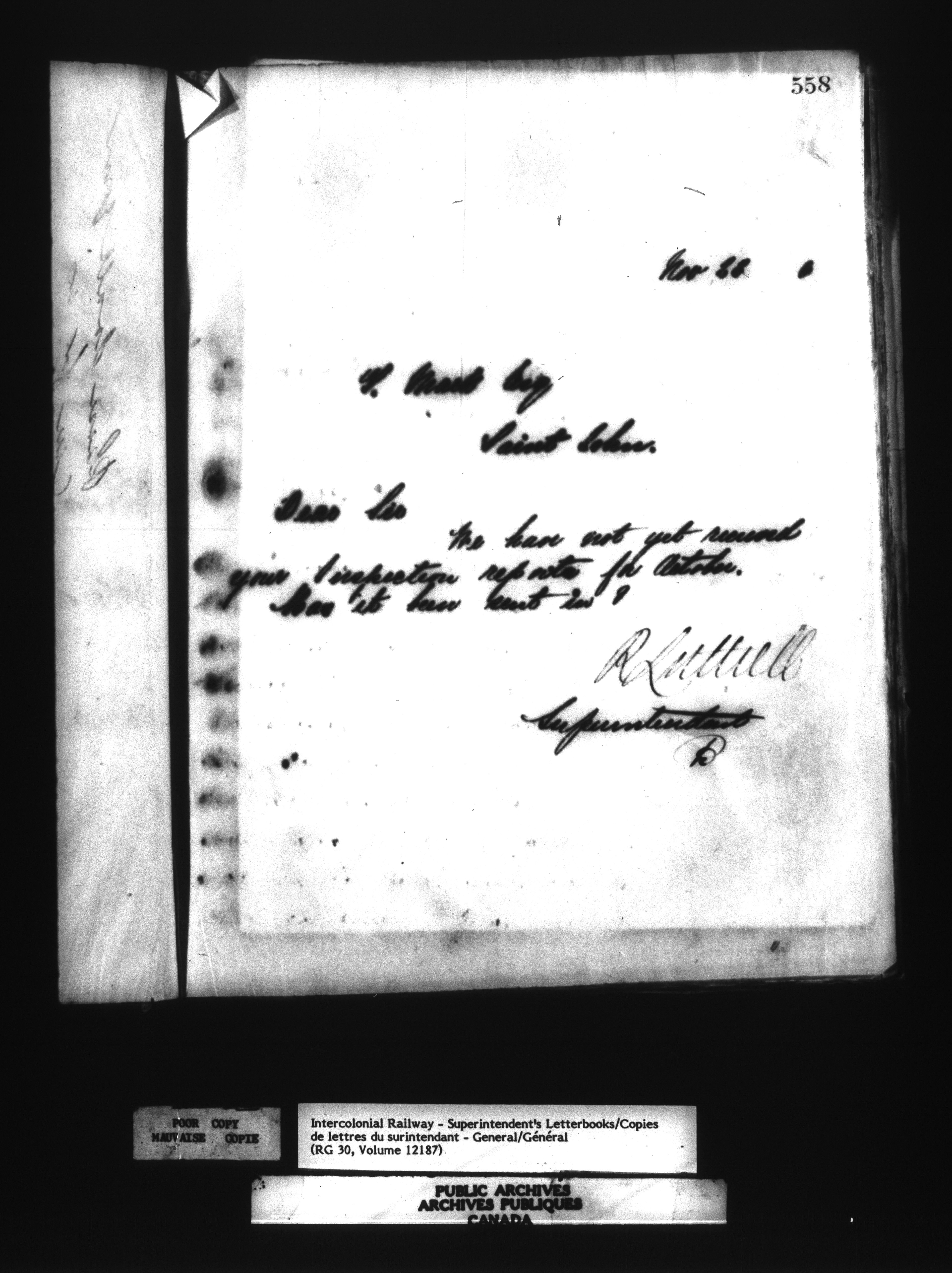 Canadian Government Railways : Office of the Superintendent, Correspondence - 12511