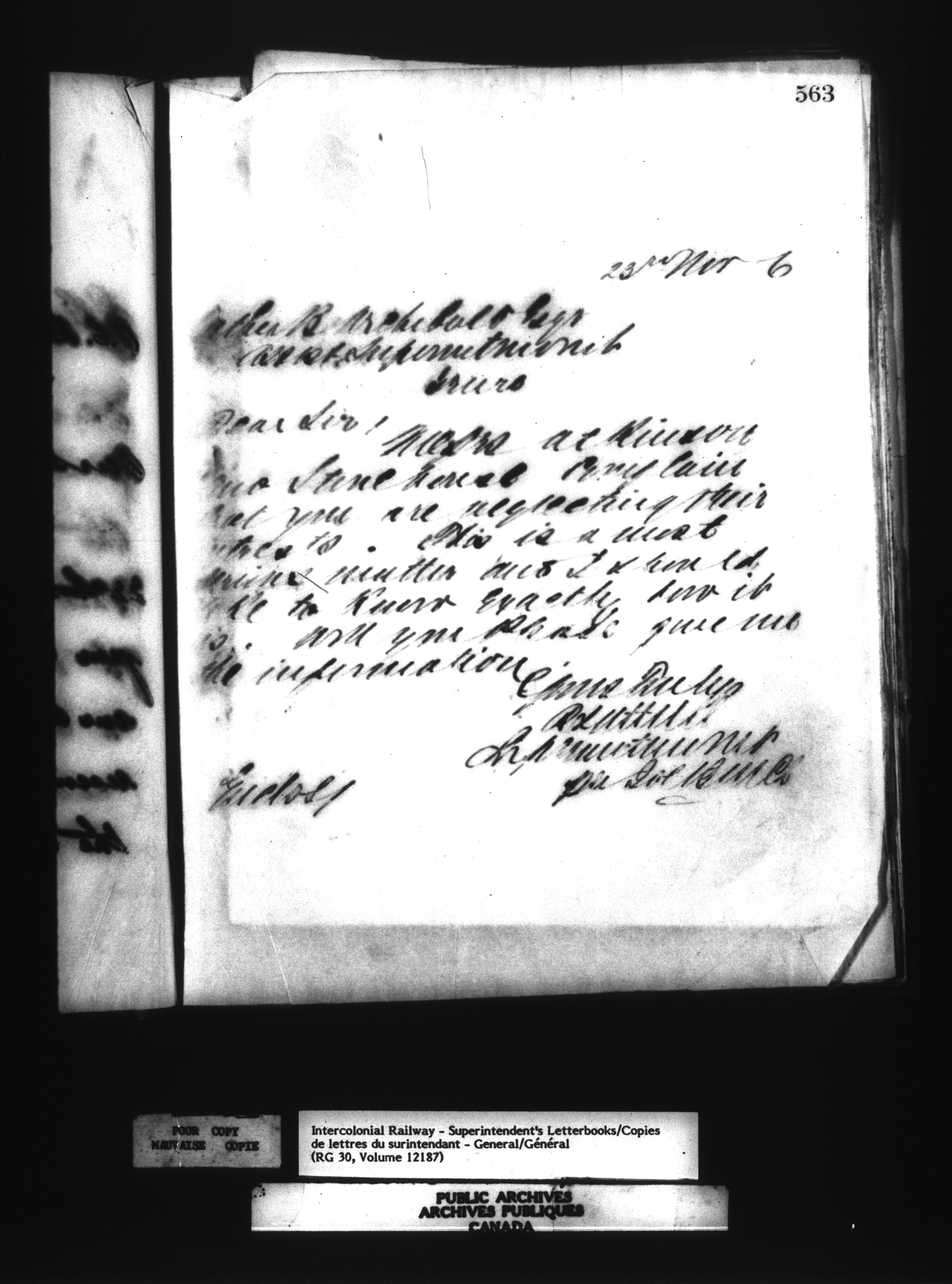 Canadian Government Railways : Office of the Superintendent, Correspondence - 12511