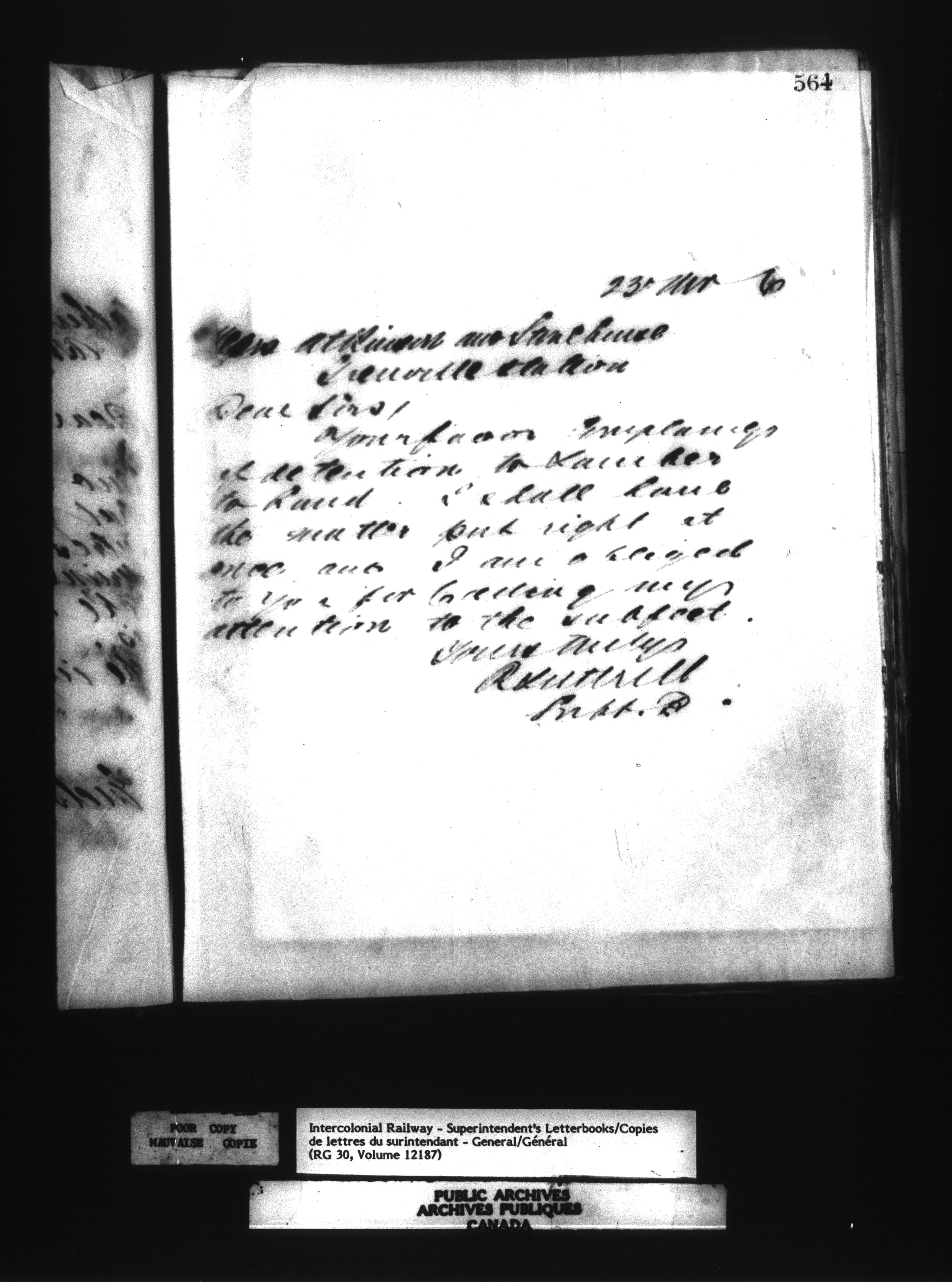 Canadian Government Railways : Office of the Superintendent, Correspondence - 12511