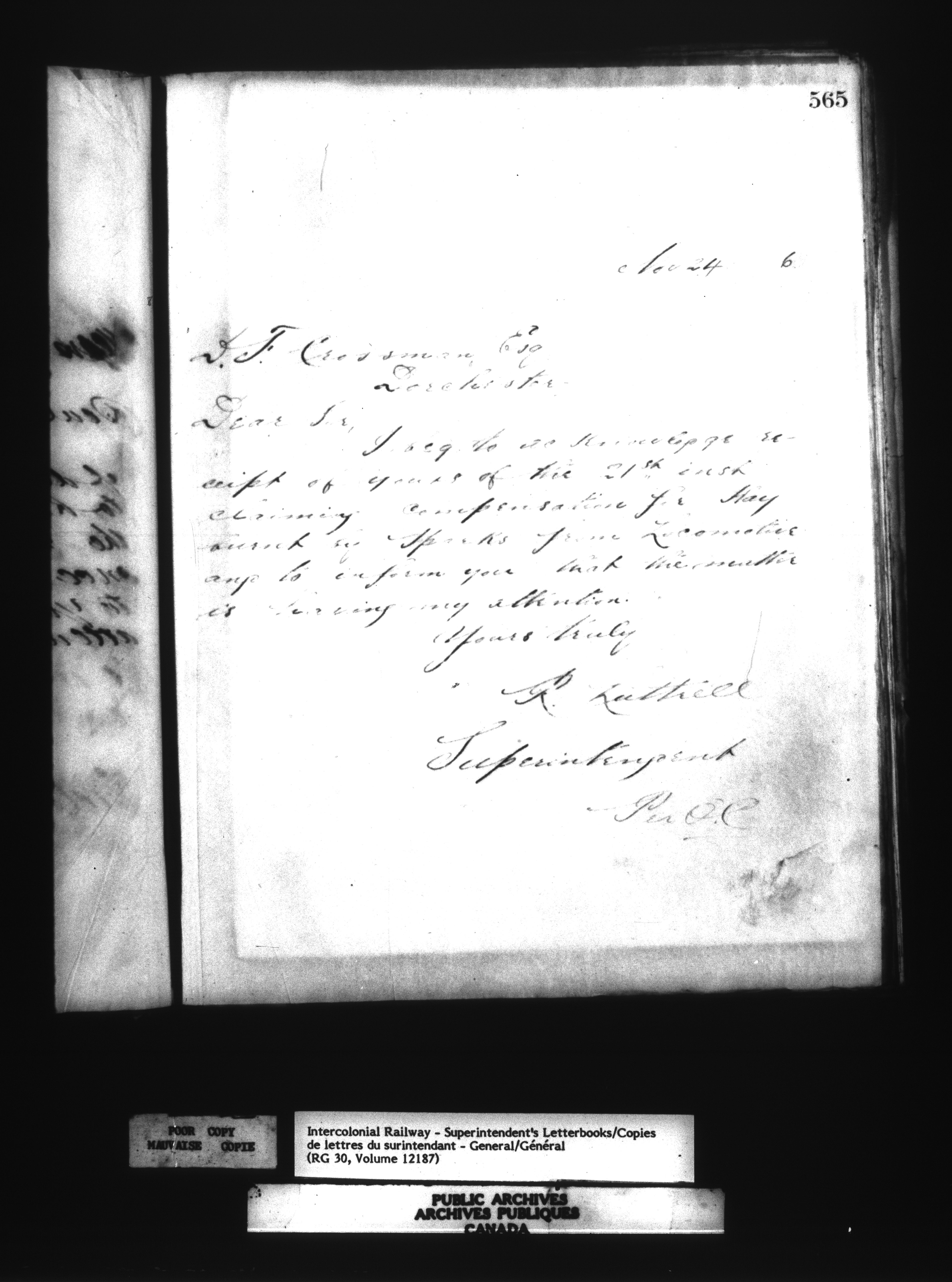 Canadian Government Railways : Office of the Superintendent, Correspondence - 12511