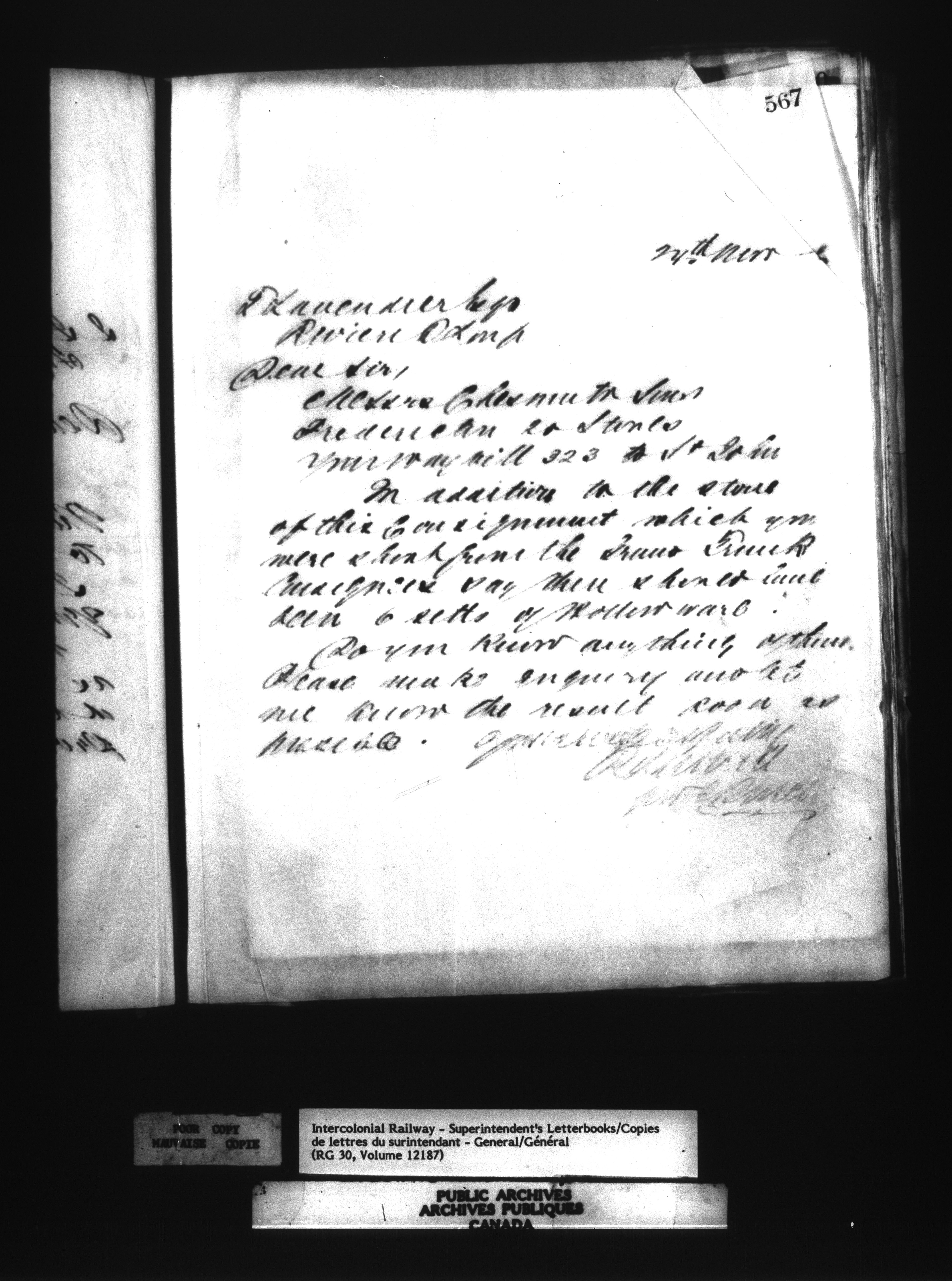 Canadian Government Railways : Office of the Superintendent, Correspondence - 12511