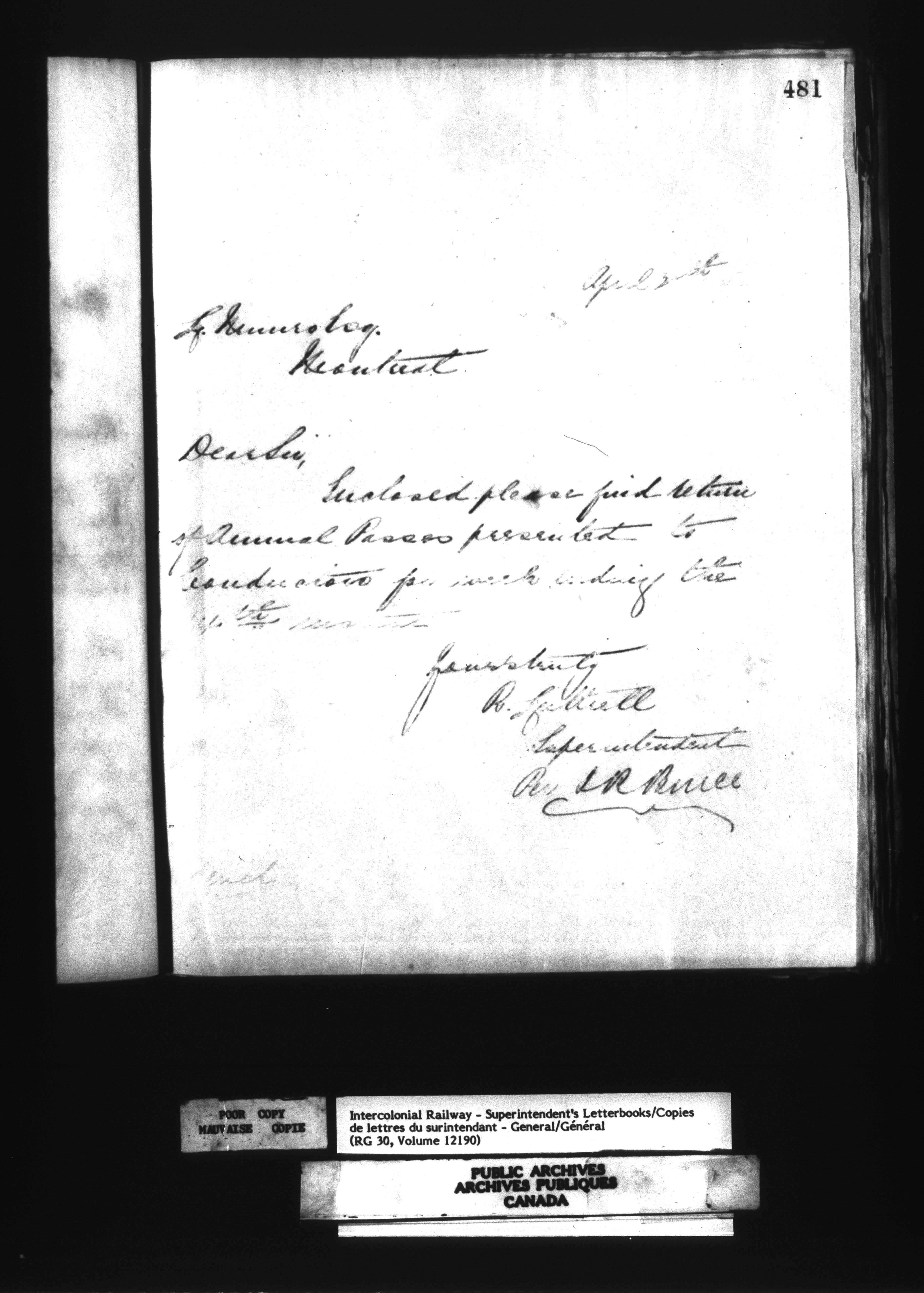 Canadian Government Railways : Office of the Superintendent, Correspondence - 12513