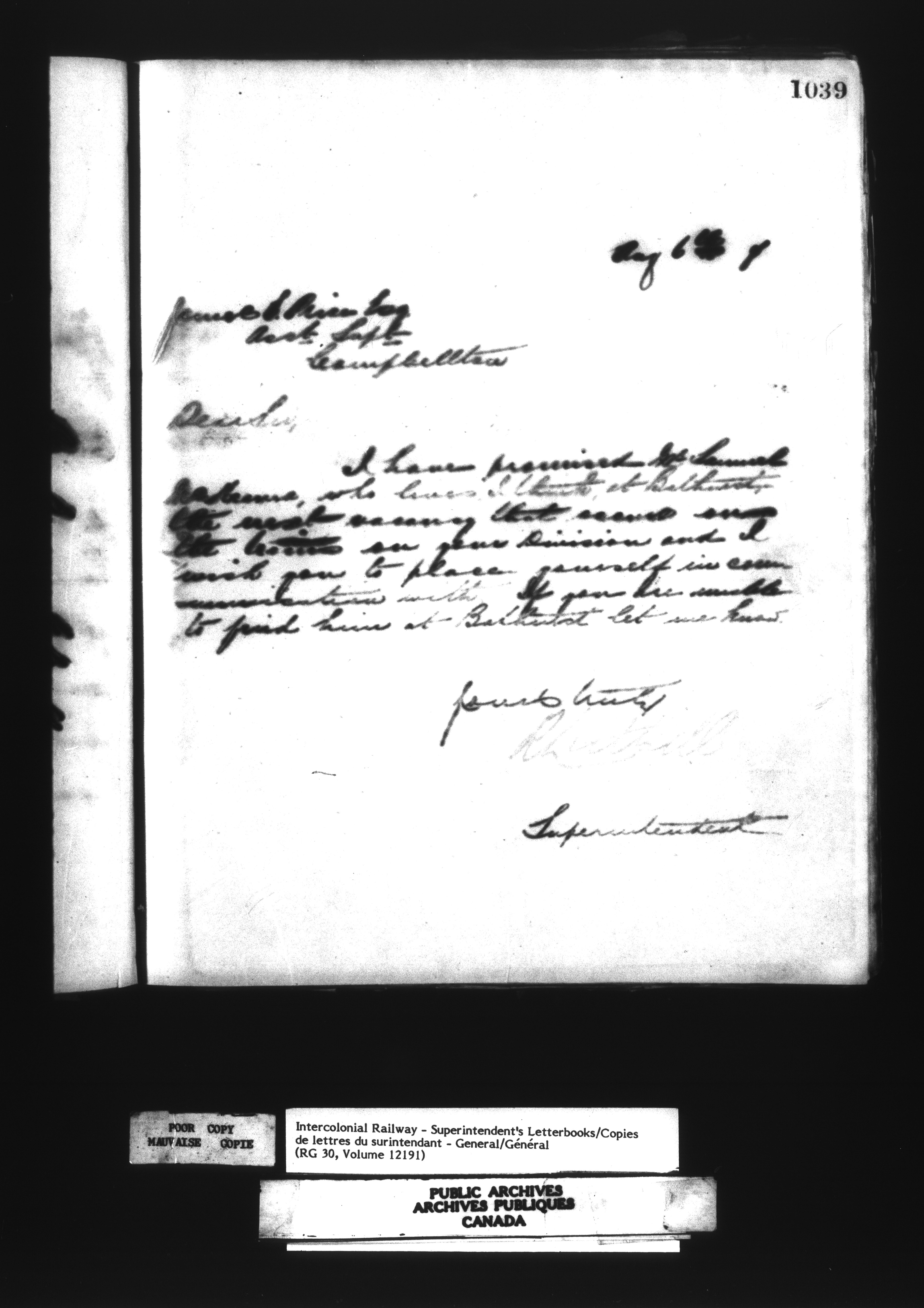 Canadian Government Railways : Office of the Superintendent, Correspondence - 12514