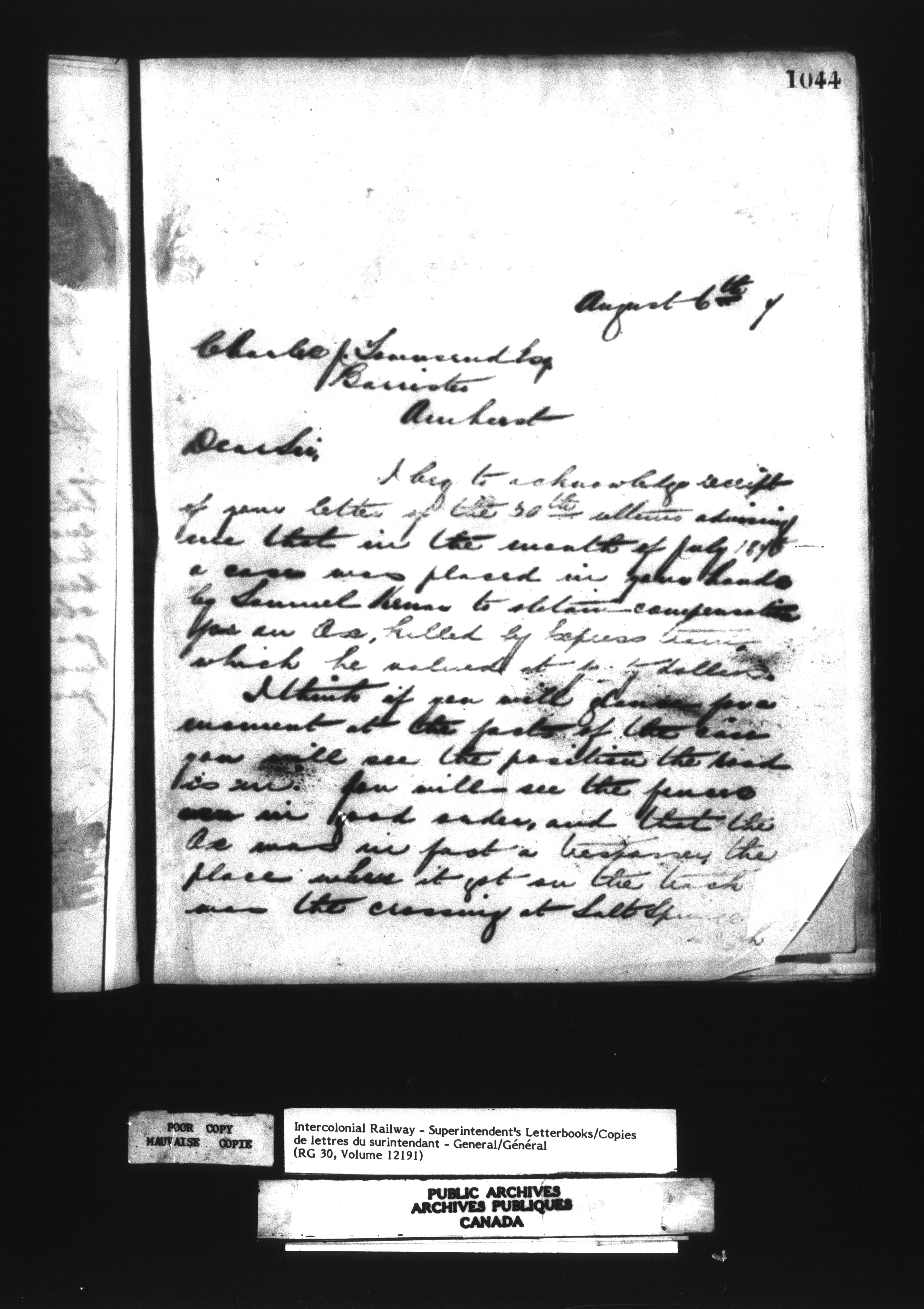 Canadian Government Railways : Office of the Superintendent, Correspondence - 12514
