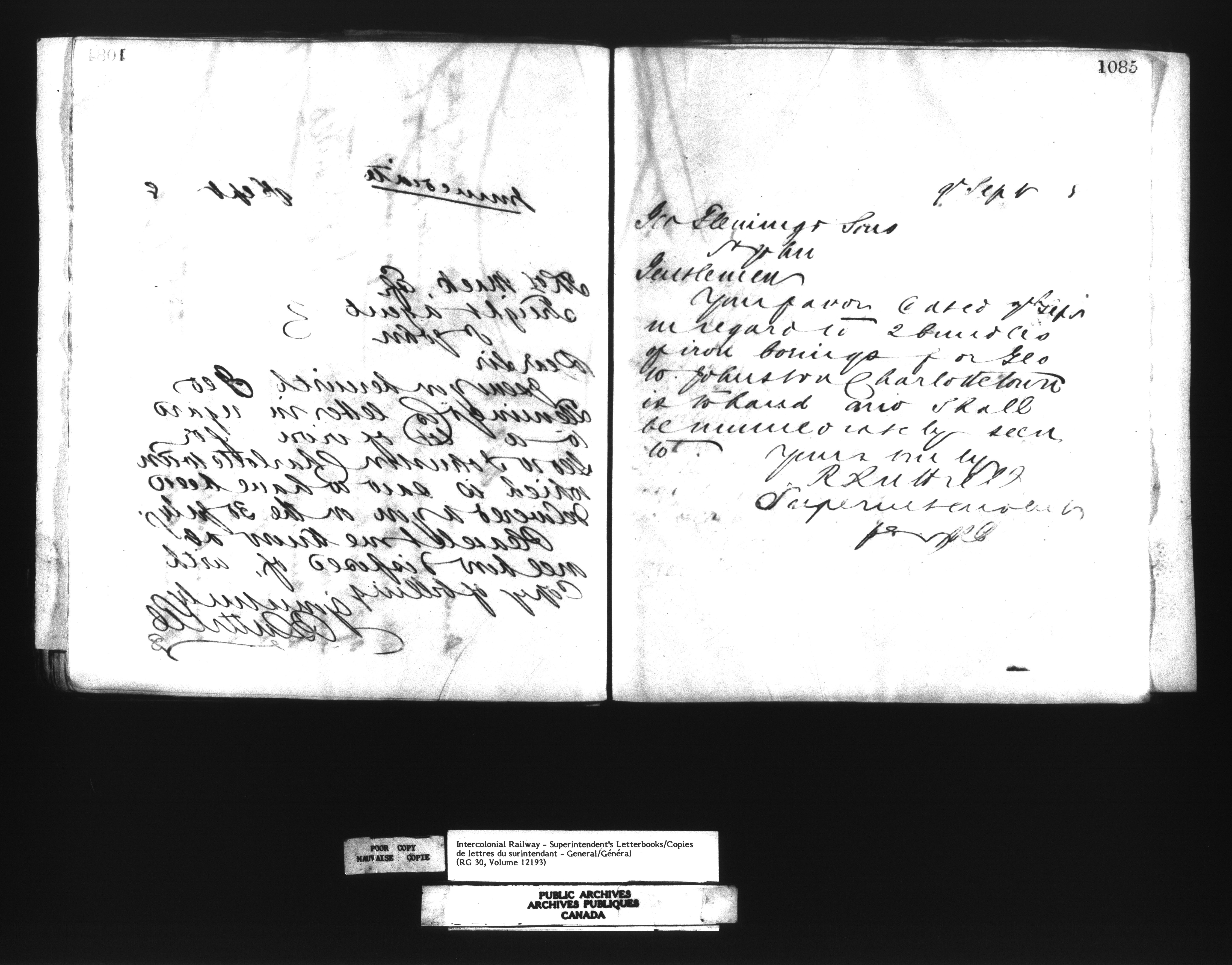 Canadian Government Railways : Office of the Superintendent, Correspondence : C-12516