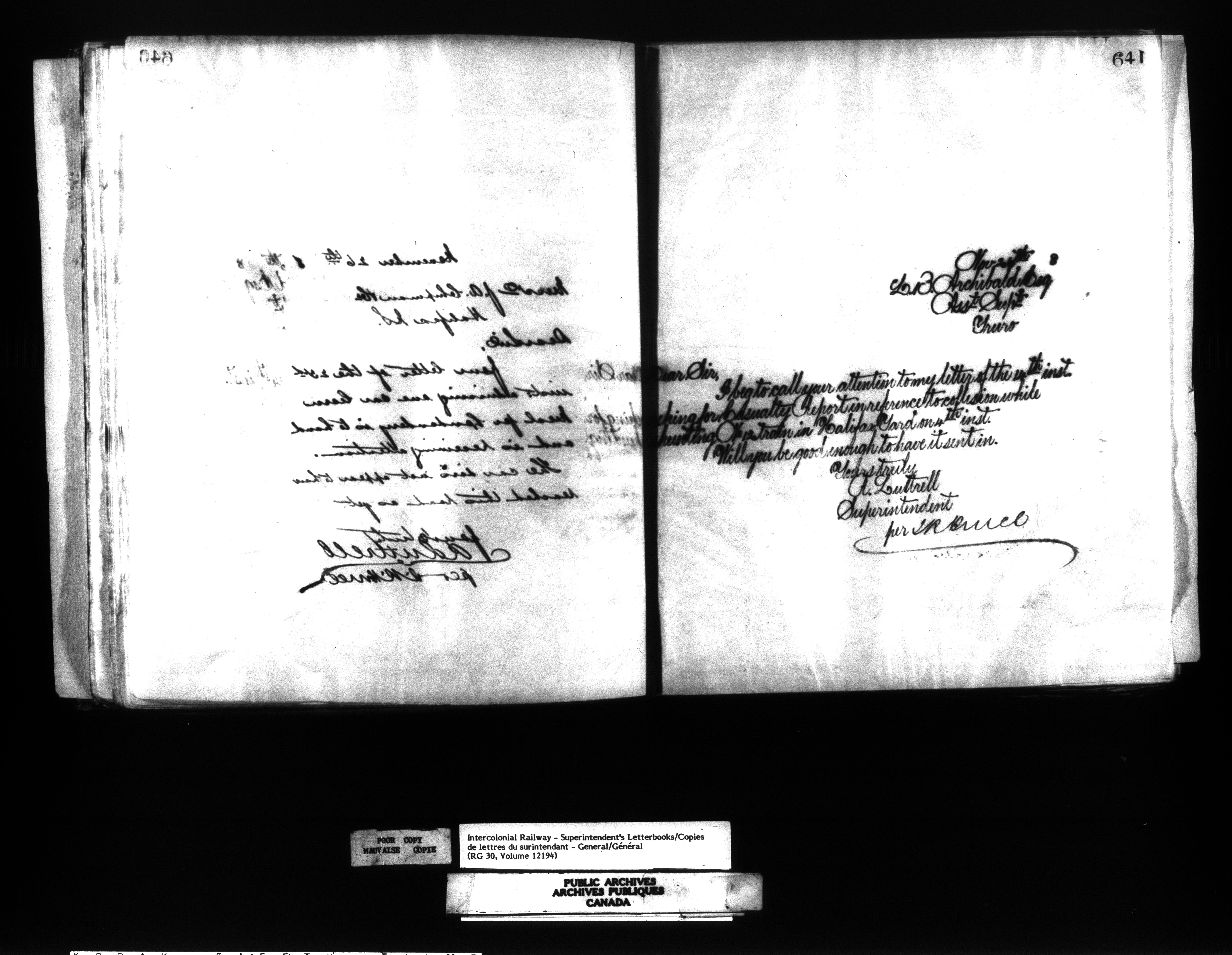 Canadian Government Railways : Office of the Superintendent, Correspondence - 12518