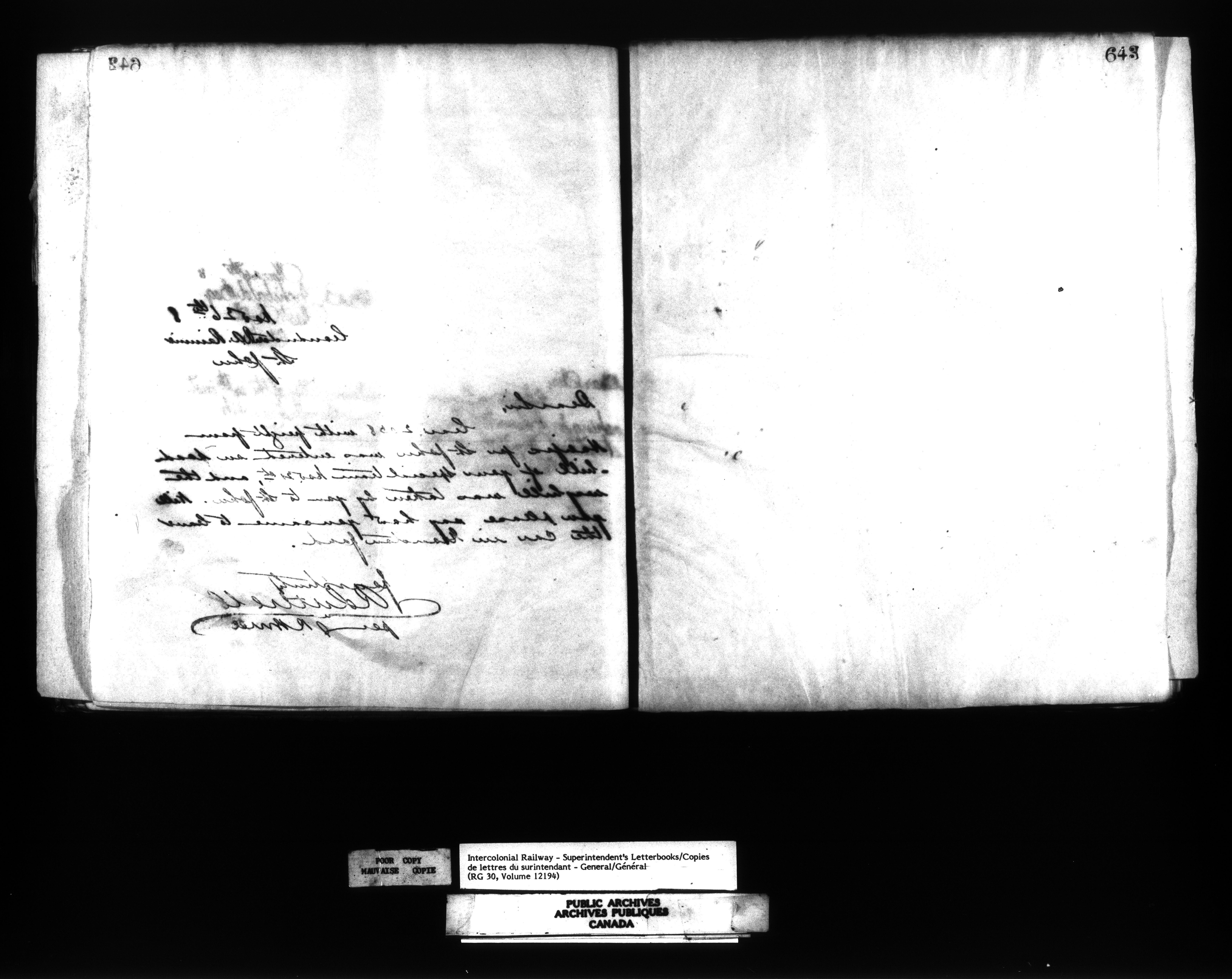 Canadian Government Railways : Office of the Superintendent, Correspondence - 12518