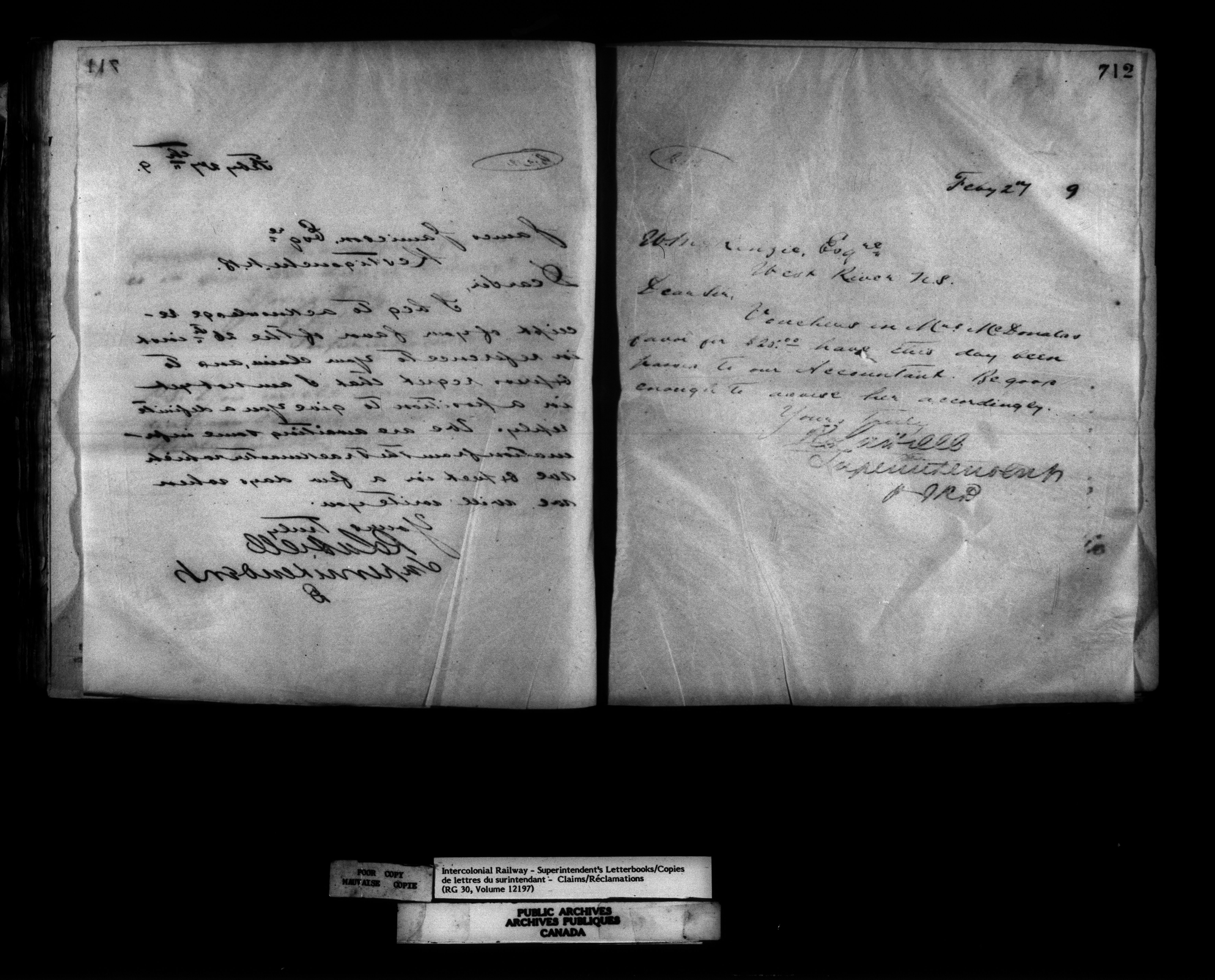 Canadian Government Railways : Office of the Superintendent, Correspondence - 12521