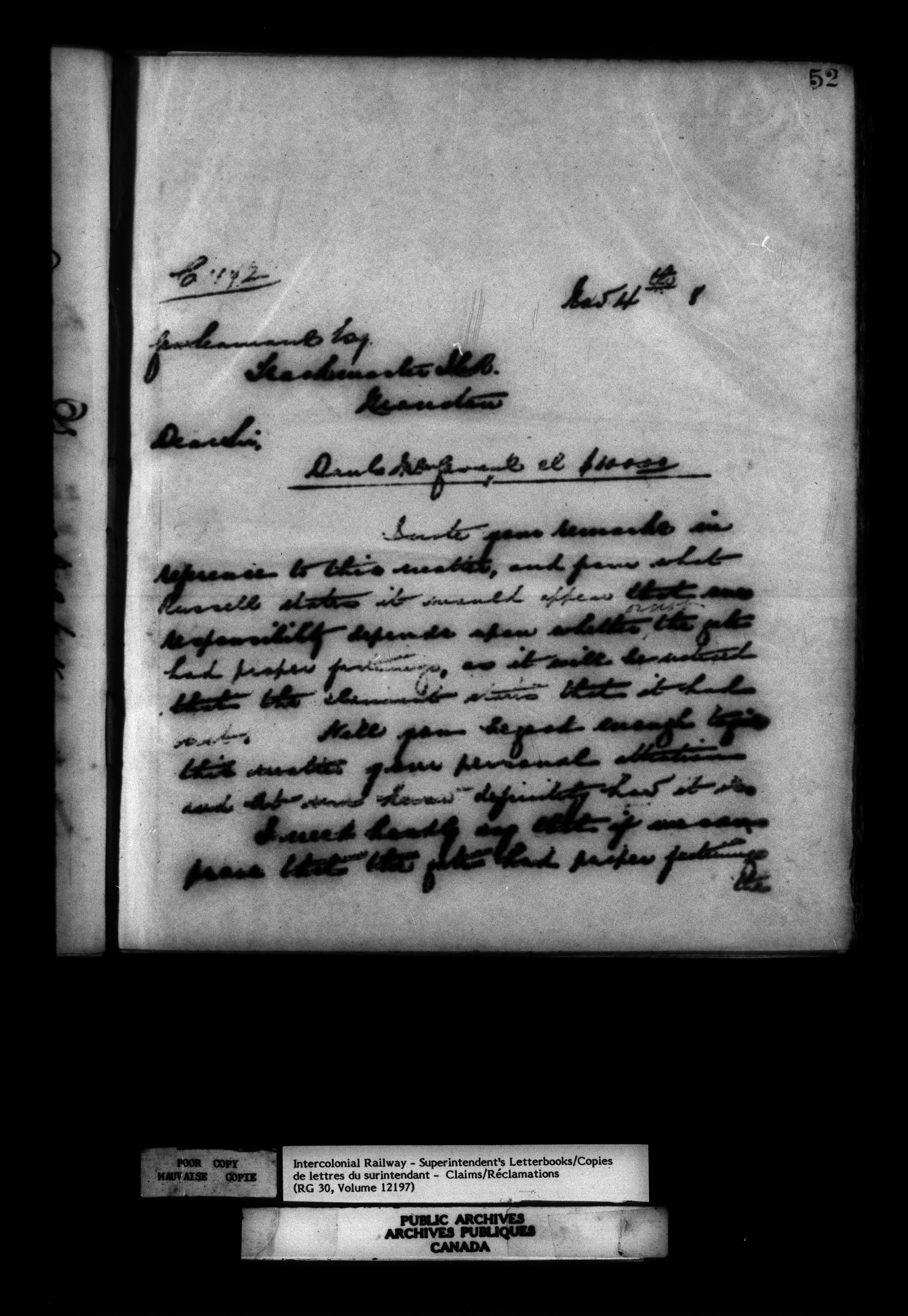 Canadian Government Railways : Office of the Superintendent, Correspondence - 12521