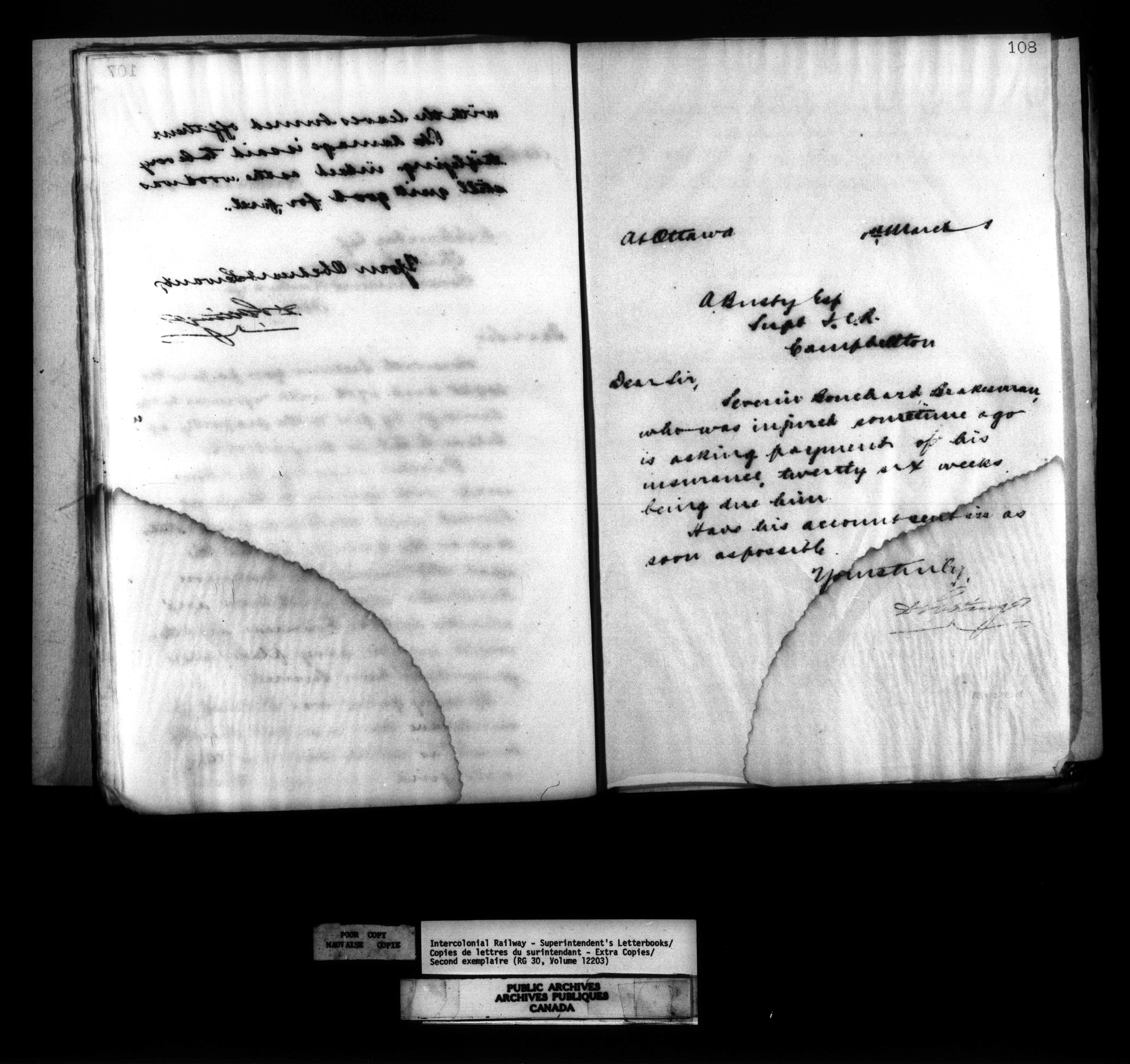 Canadian Government Railways : Office of the Superintendent, Correspondence - 12527