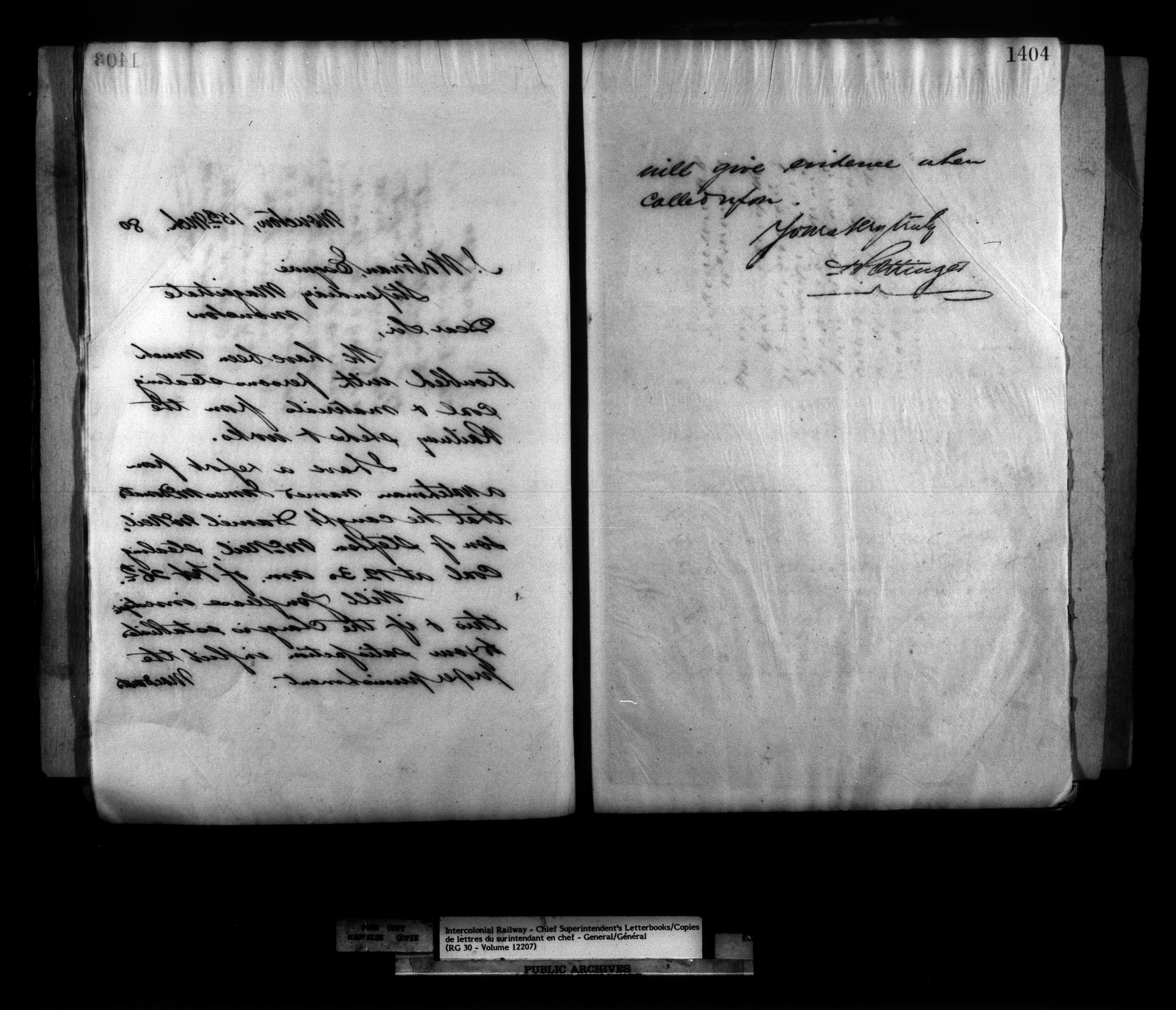 Canadian Government Railways : Office of the Chief Superintendent, Outward correspondence : C-12533