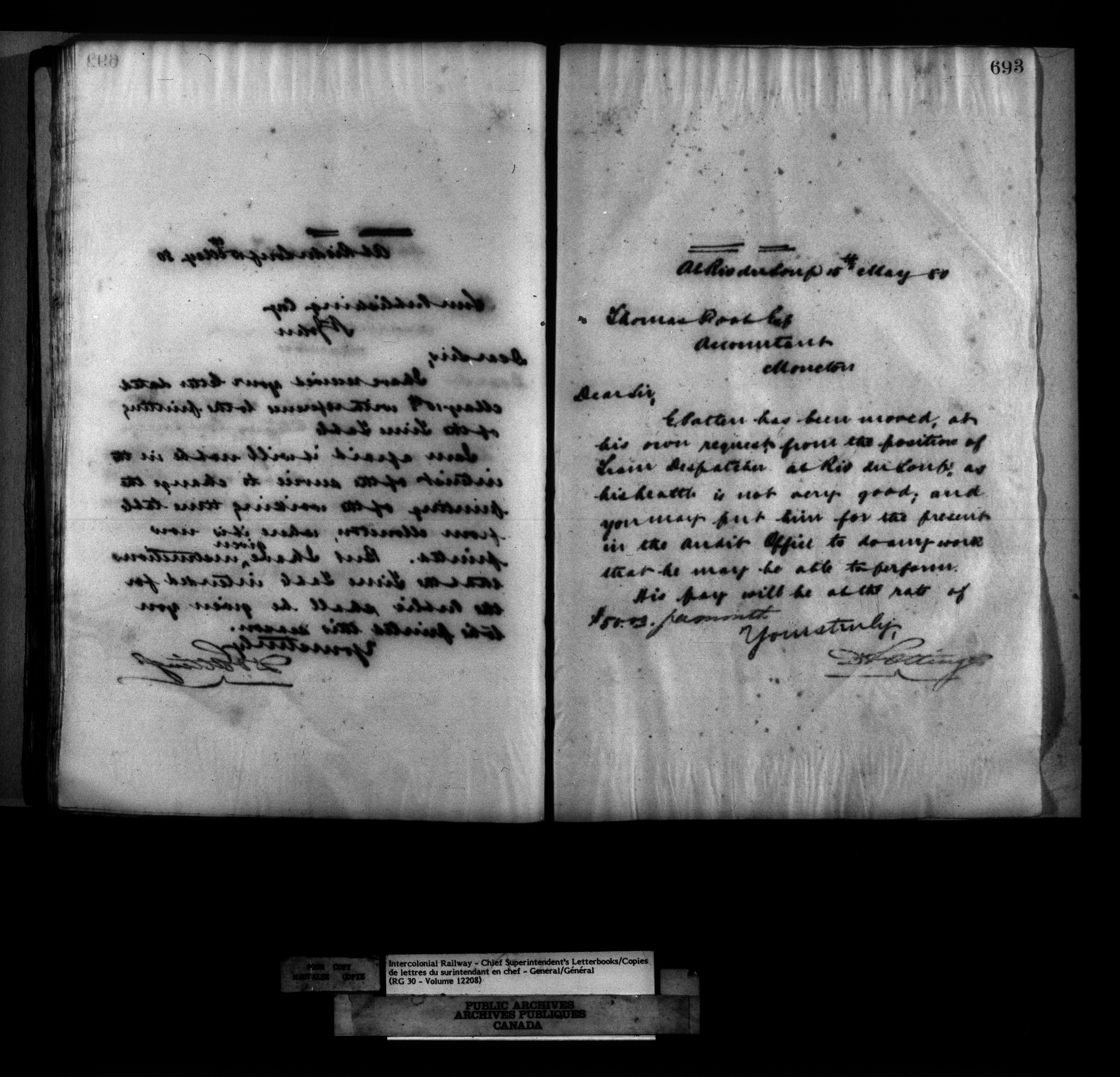 Canadian Government Railways : Office of the Chief Superintendent, Outward correspondence : C-12533