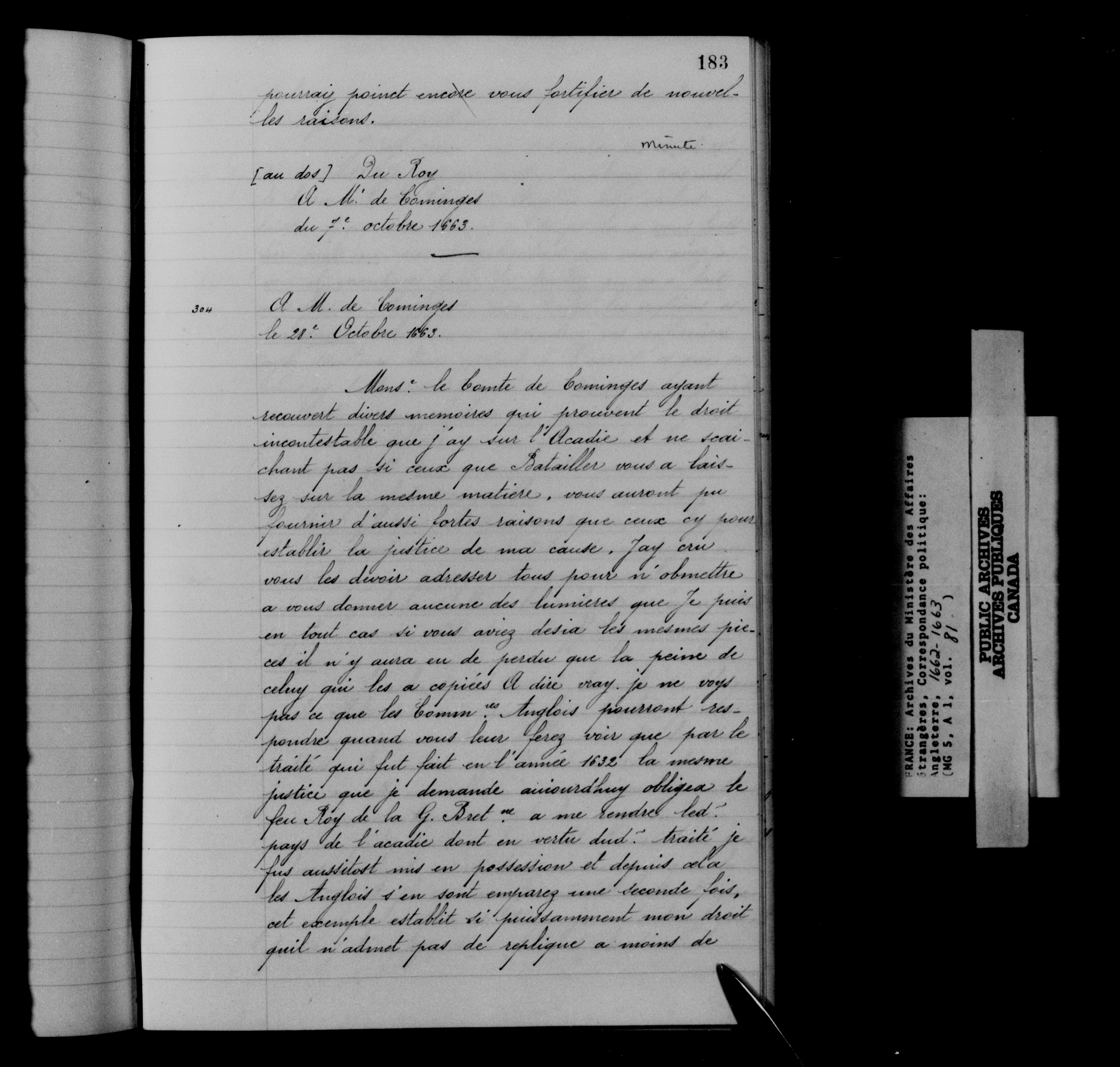 France. Ministère des Affaires étrangères : Correspondance politique, Angleterre - 12541