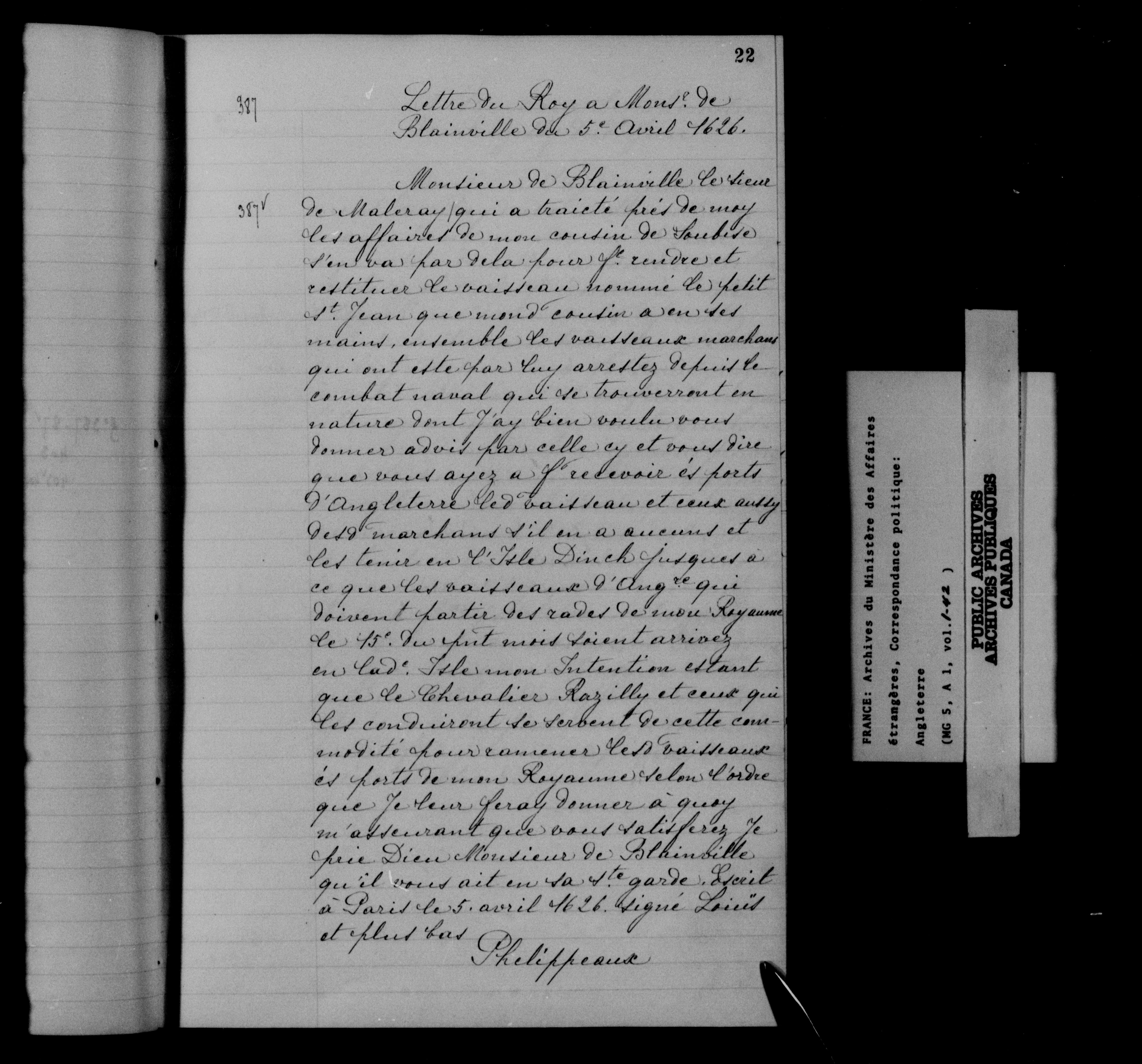 France. Ministère des Affaires étrangères : Correspondance politique, Angleterre - 12541