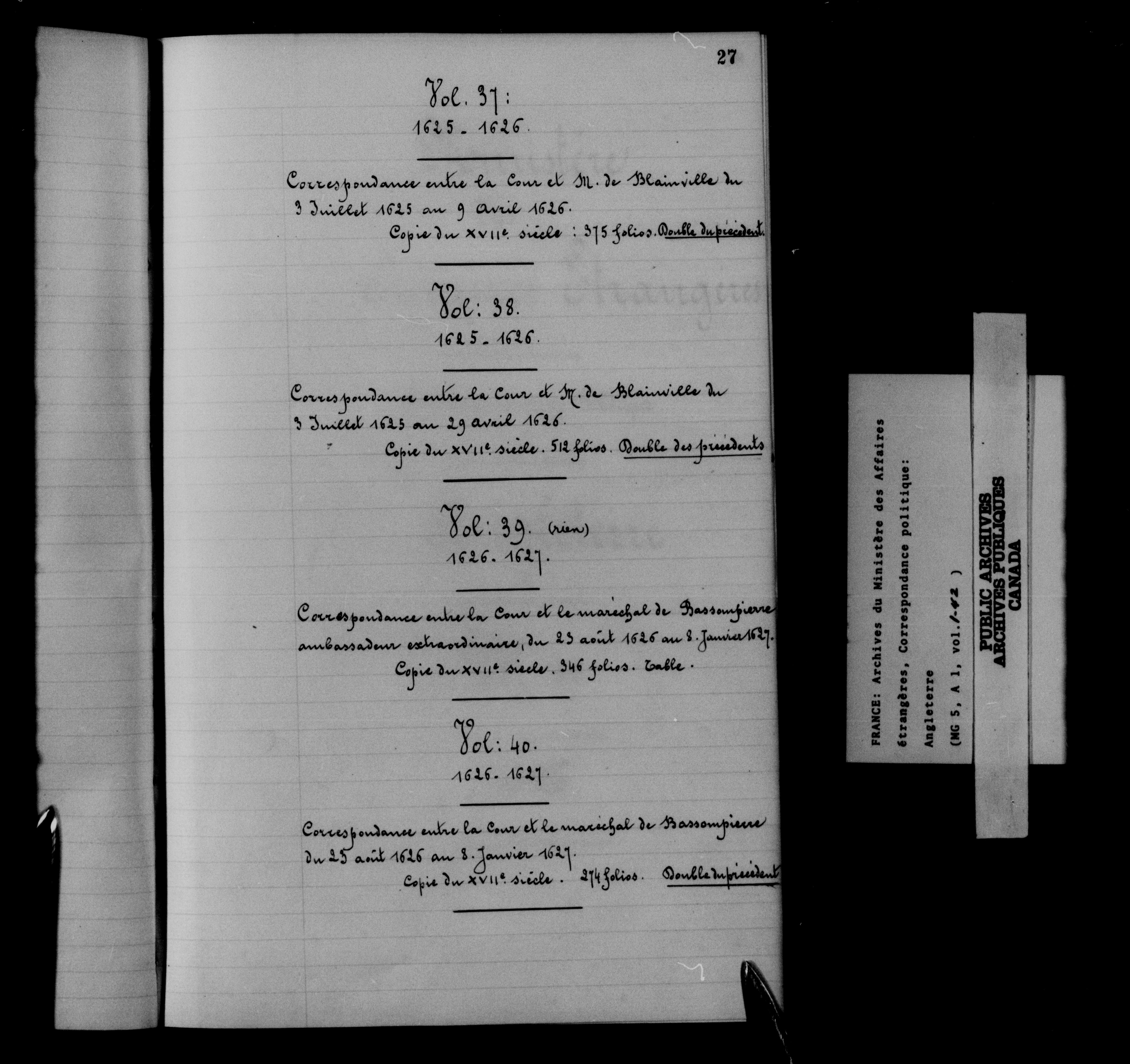 France. Ministère des Affaires étrangères : Correspondance politique, Angleterre - 12541
