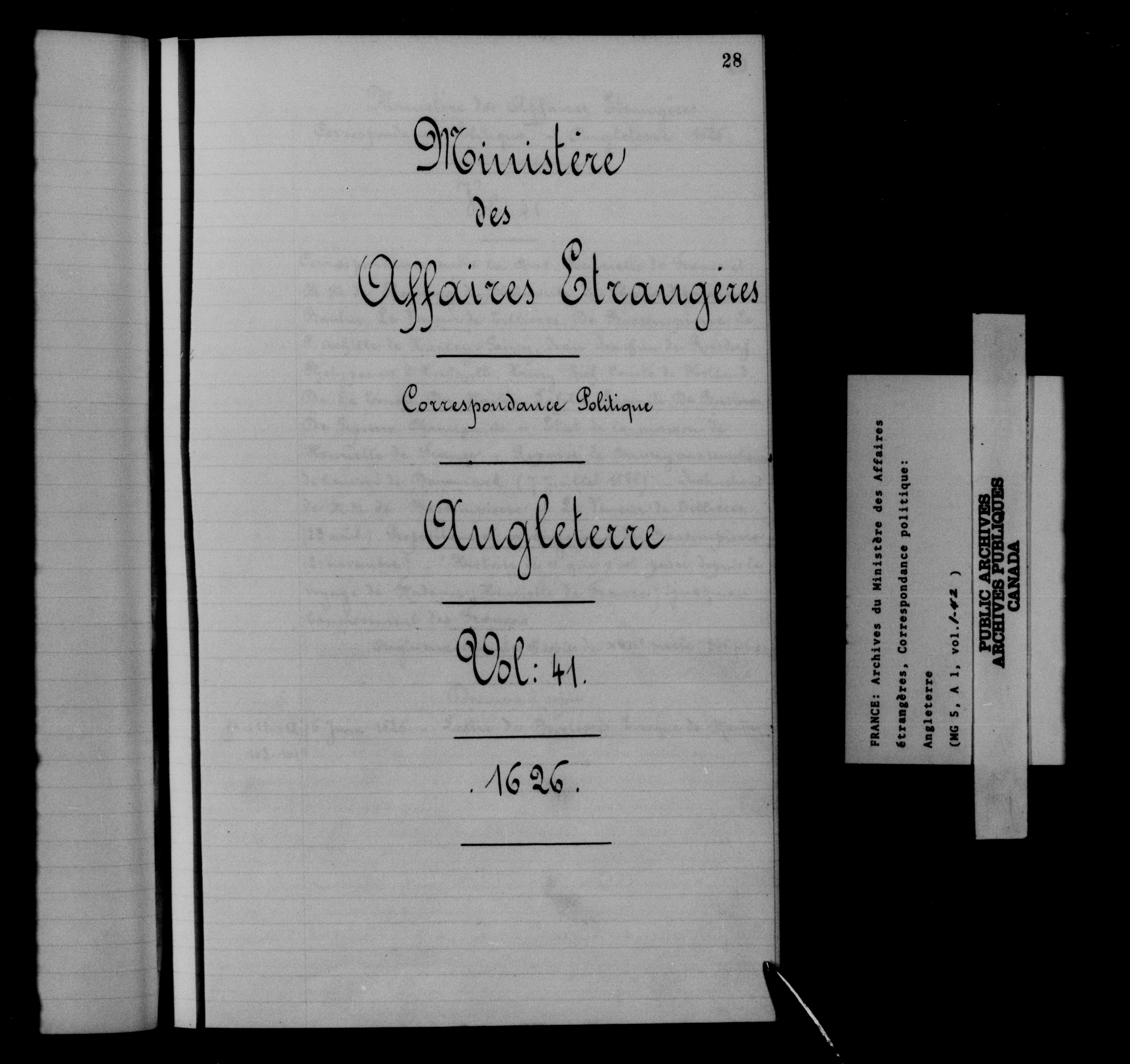 France. Ministère des Affaires étrangères : Correspondance politique, Angleterre - 12541