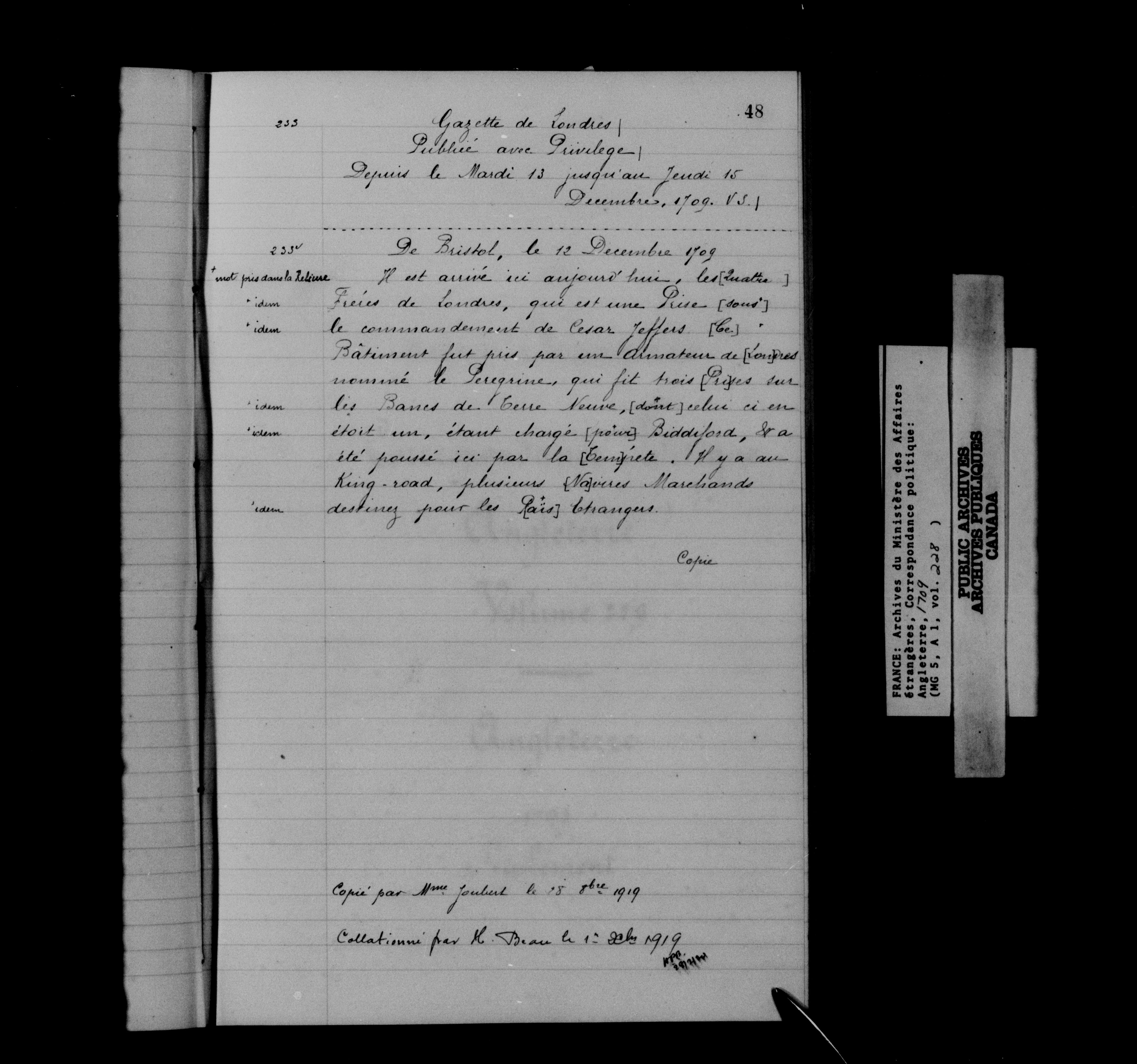 France. Ministère des Affaires étrangères : Correspondance politique, Angleterre - 12542
