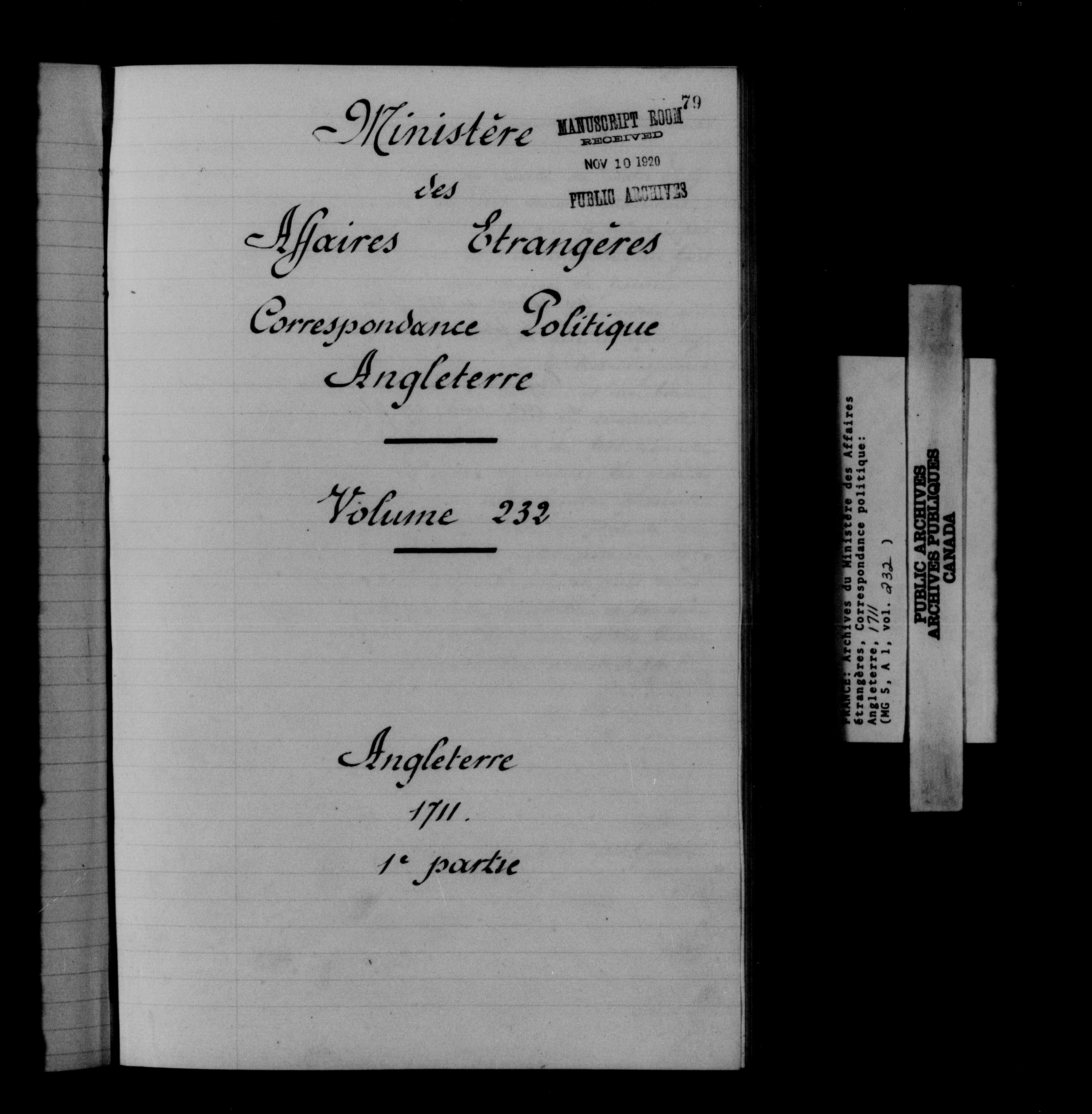 France. Ministère des Affaires étrangères : Correspondance politique, Angleterre - 12542