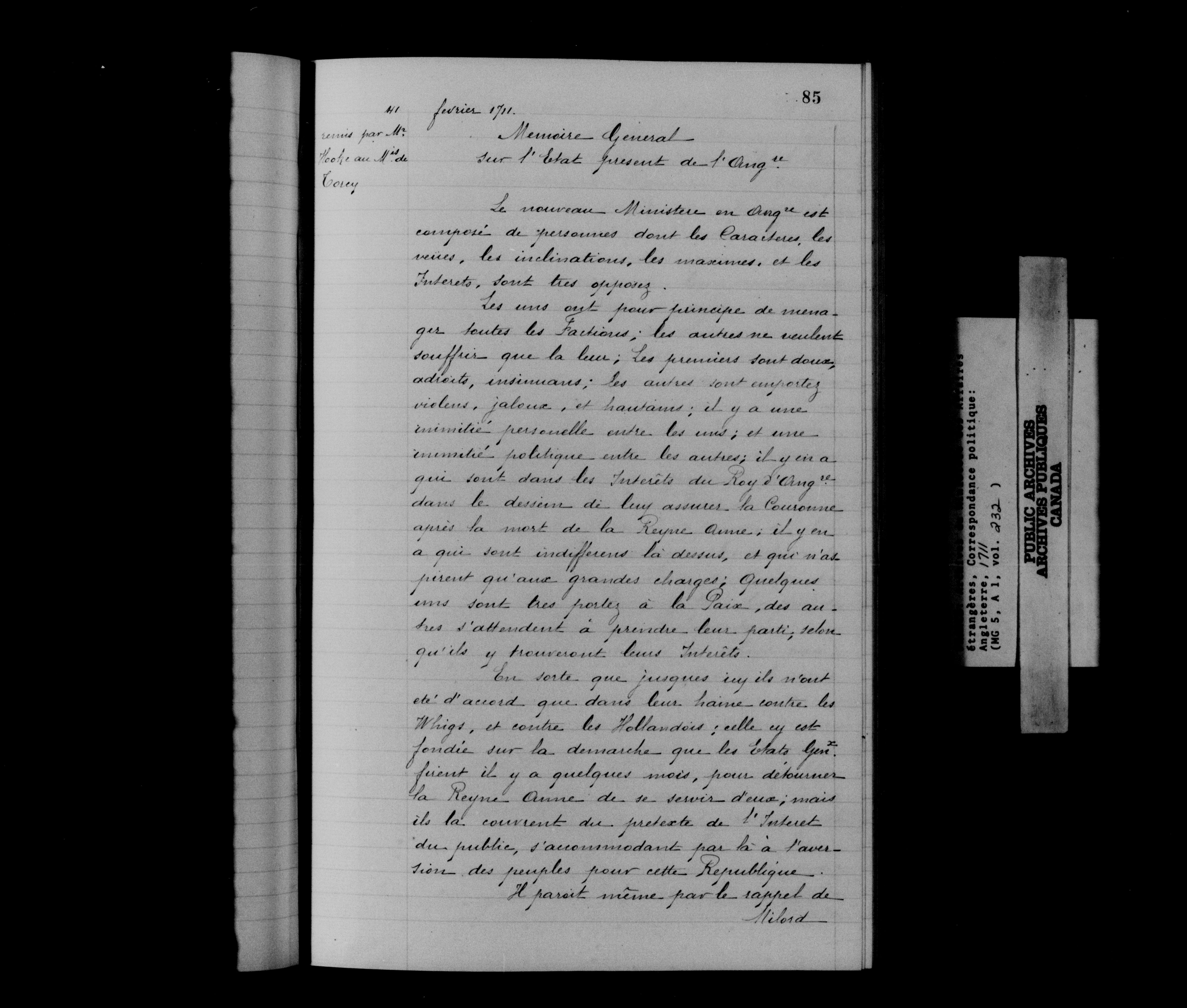 France. Ministère des Affaires étrangères : Correspondance politique, Angleterre - 12542