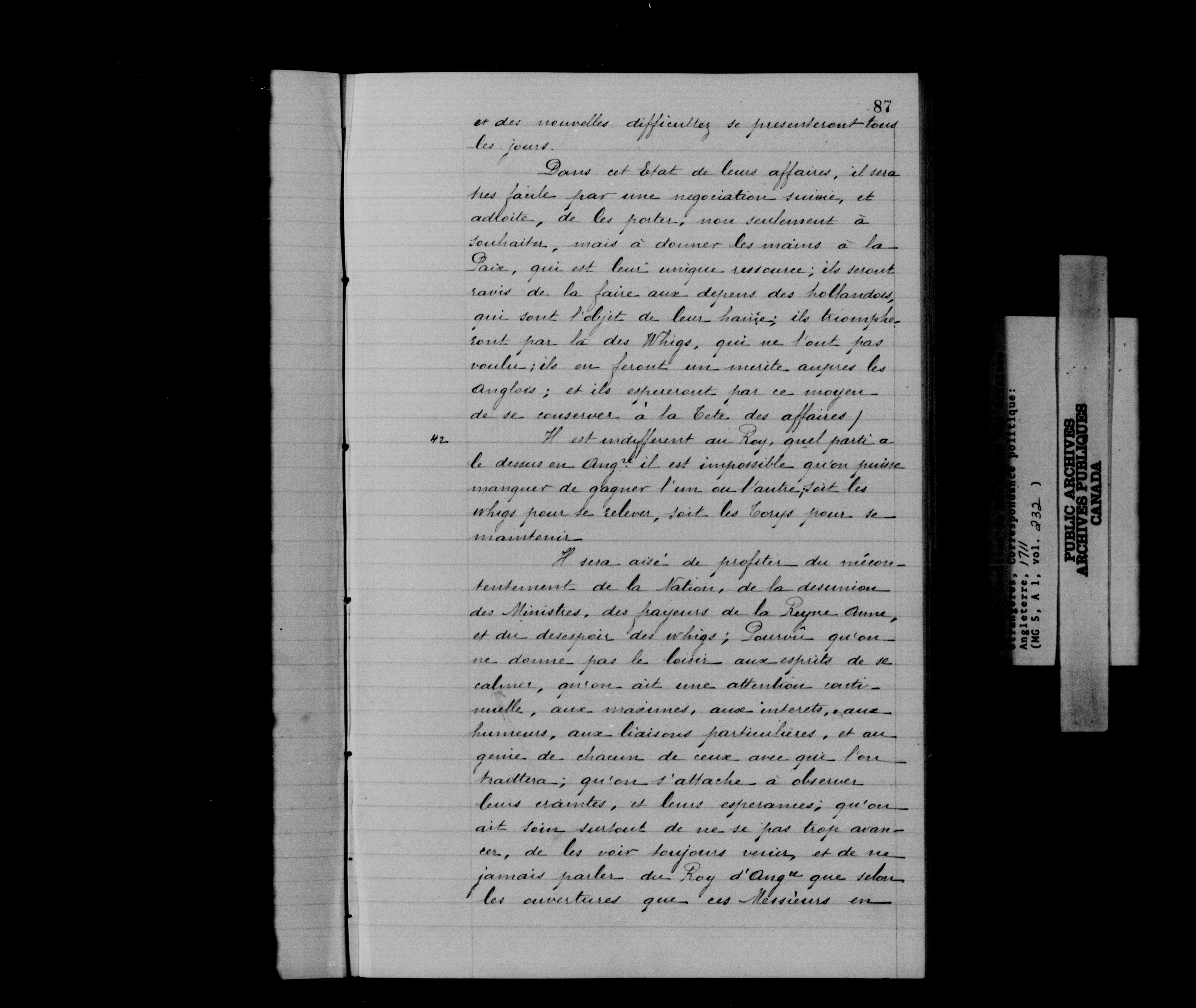 France. Ministère des Affaires étrangères : Correspondance politique, Angleterre - 12542