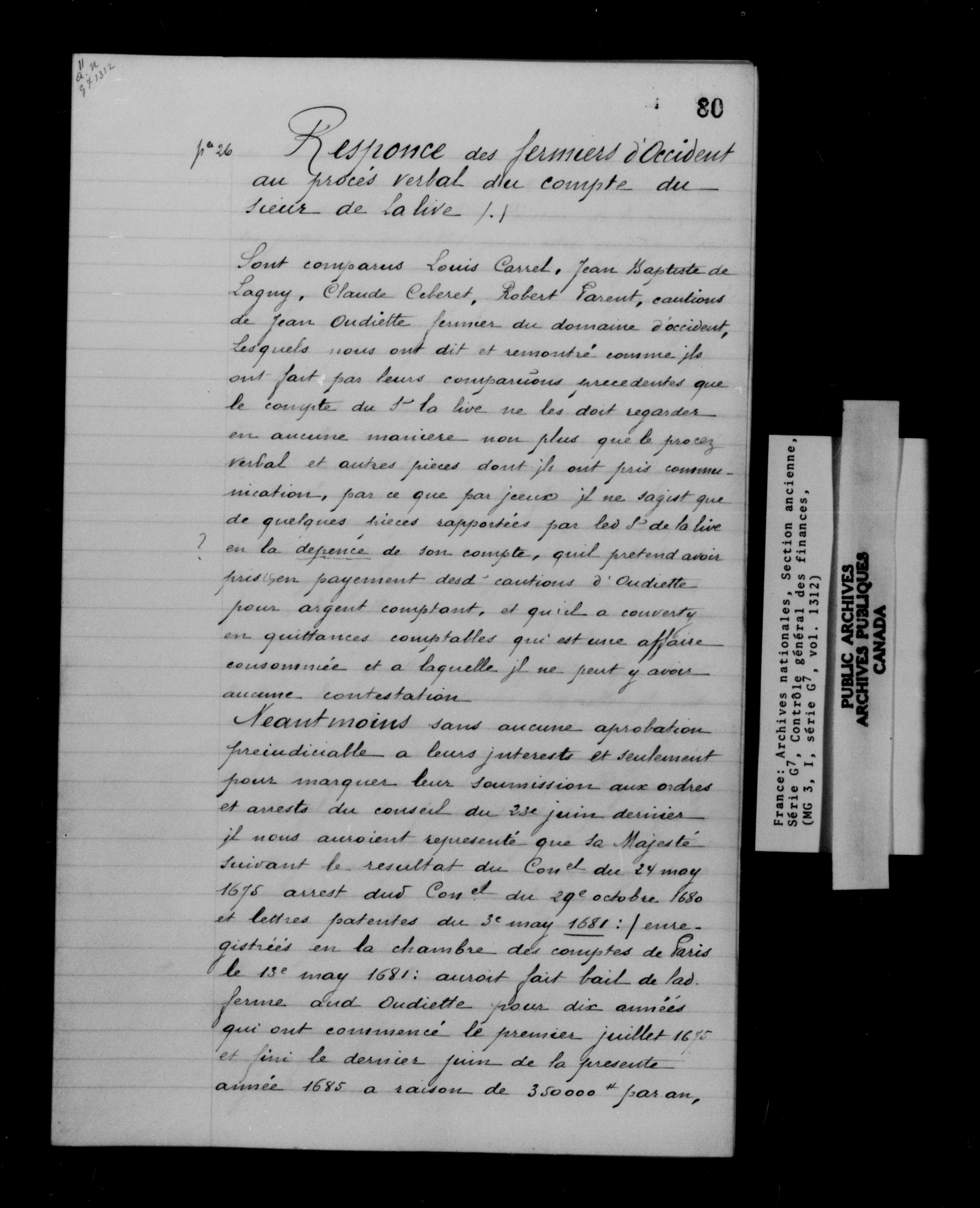 France. Archives nationales, Section ancienne, Contrôle général des finances. Sous-série G7 - 12554