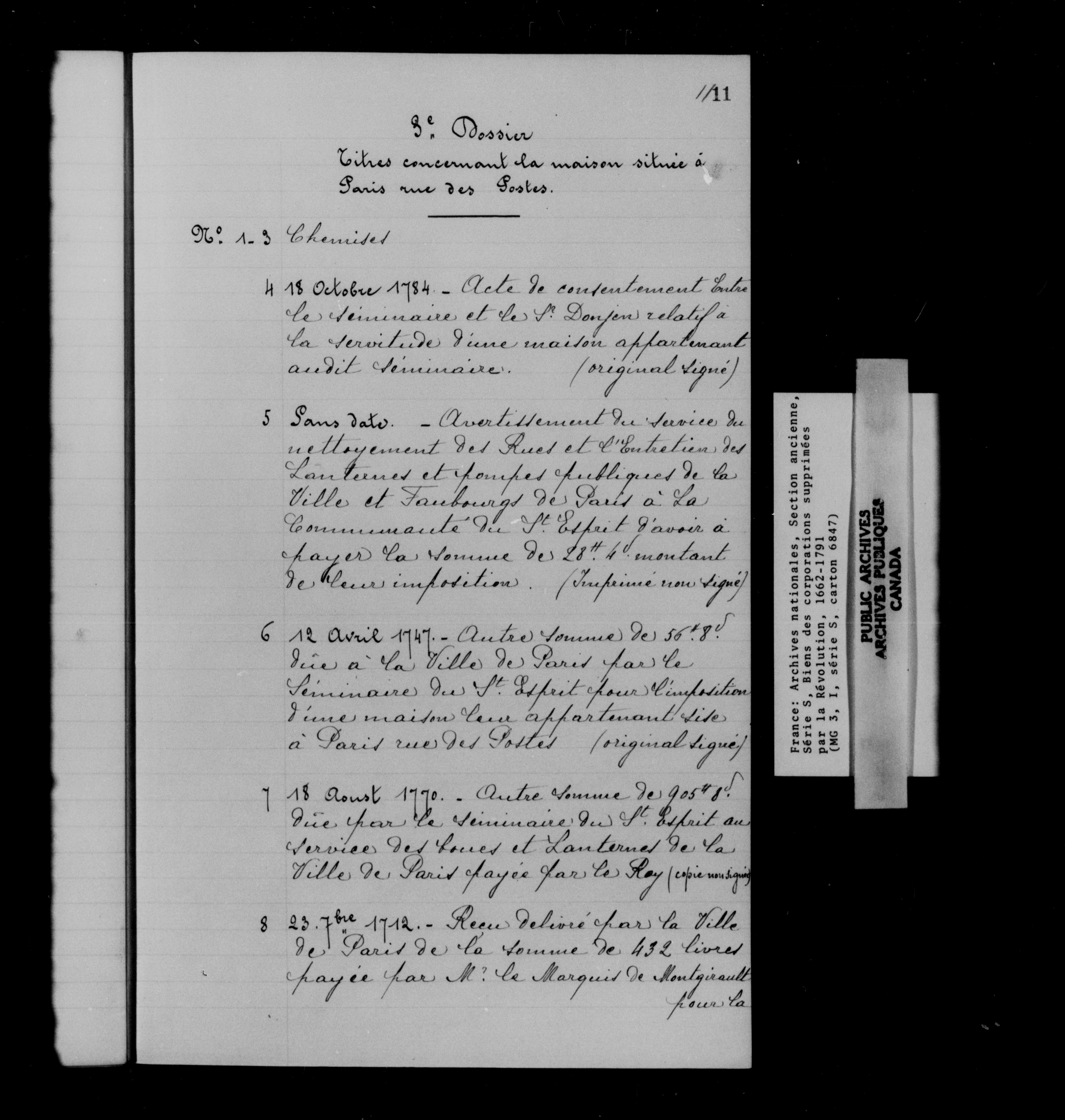 France. Fonds des Archives nationales. Série S. Biens des établissements religieux supprimés - 12558