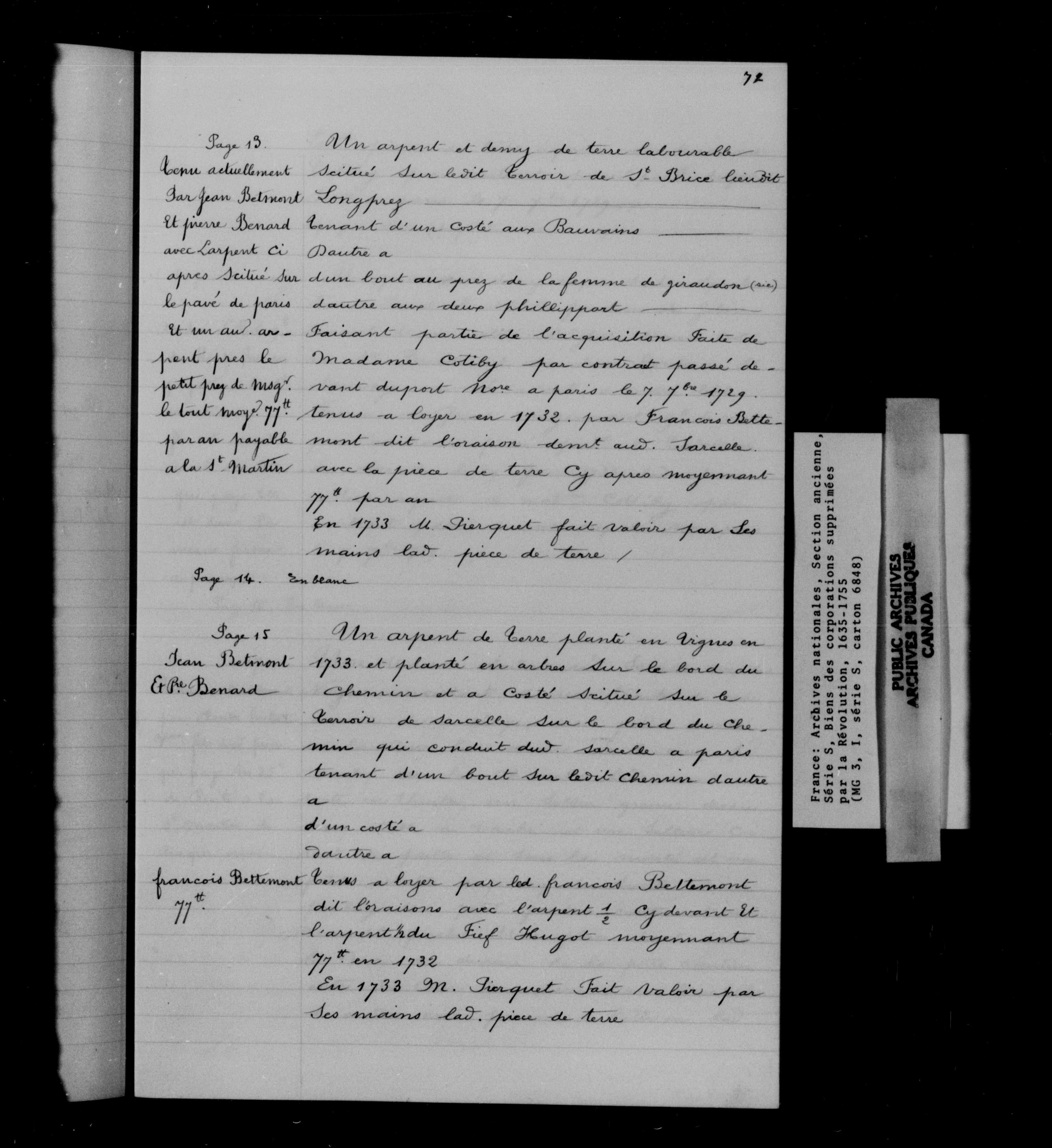 France. Fonds des Archives nationales. Série S. Biens des établissements religieux supprimés - 12558