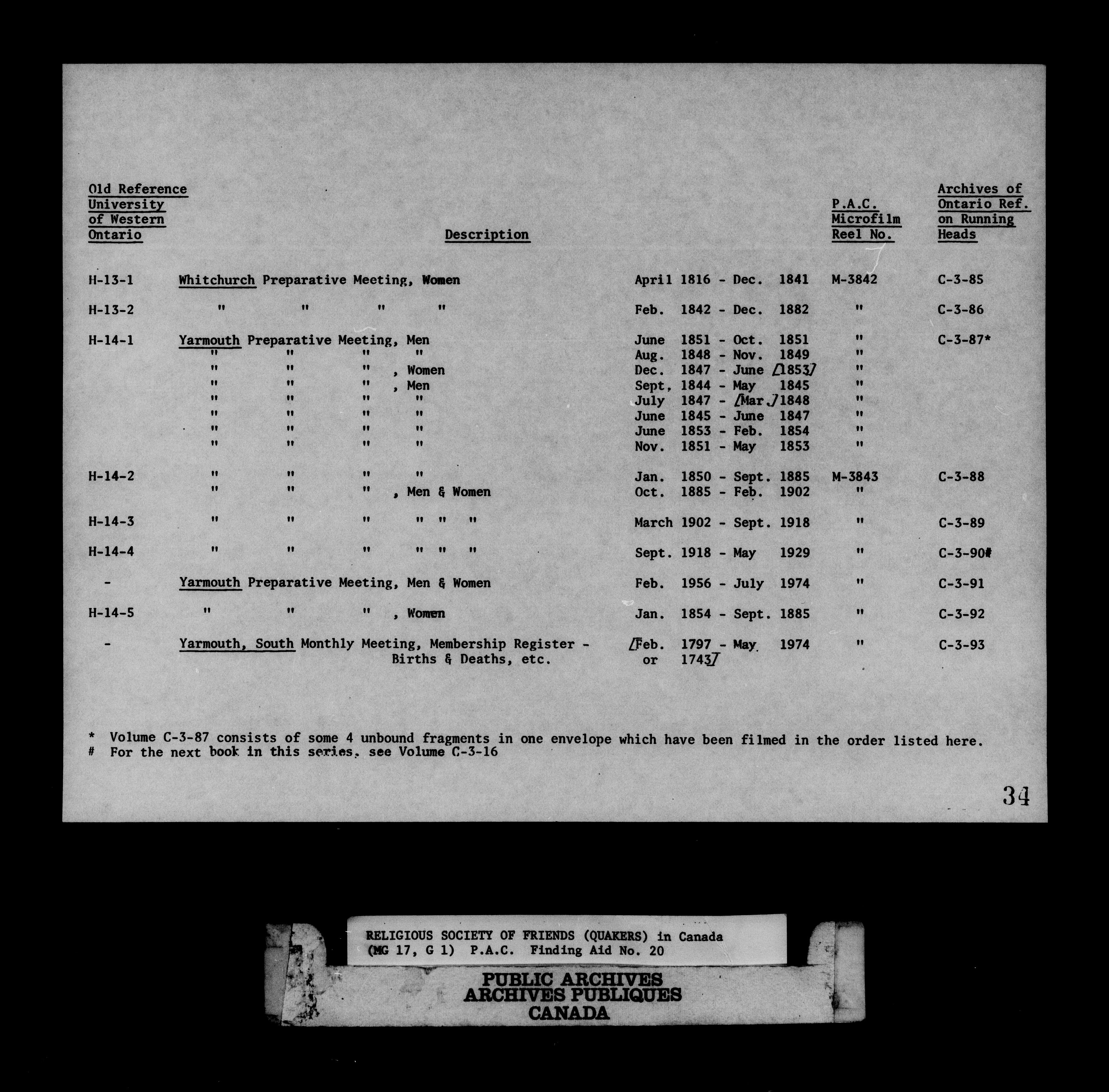 Society of Friends fonds : finding aid no. 20 : C-12563