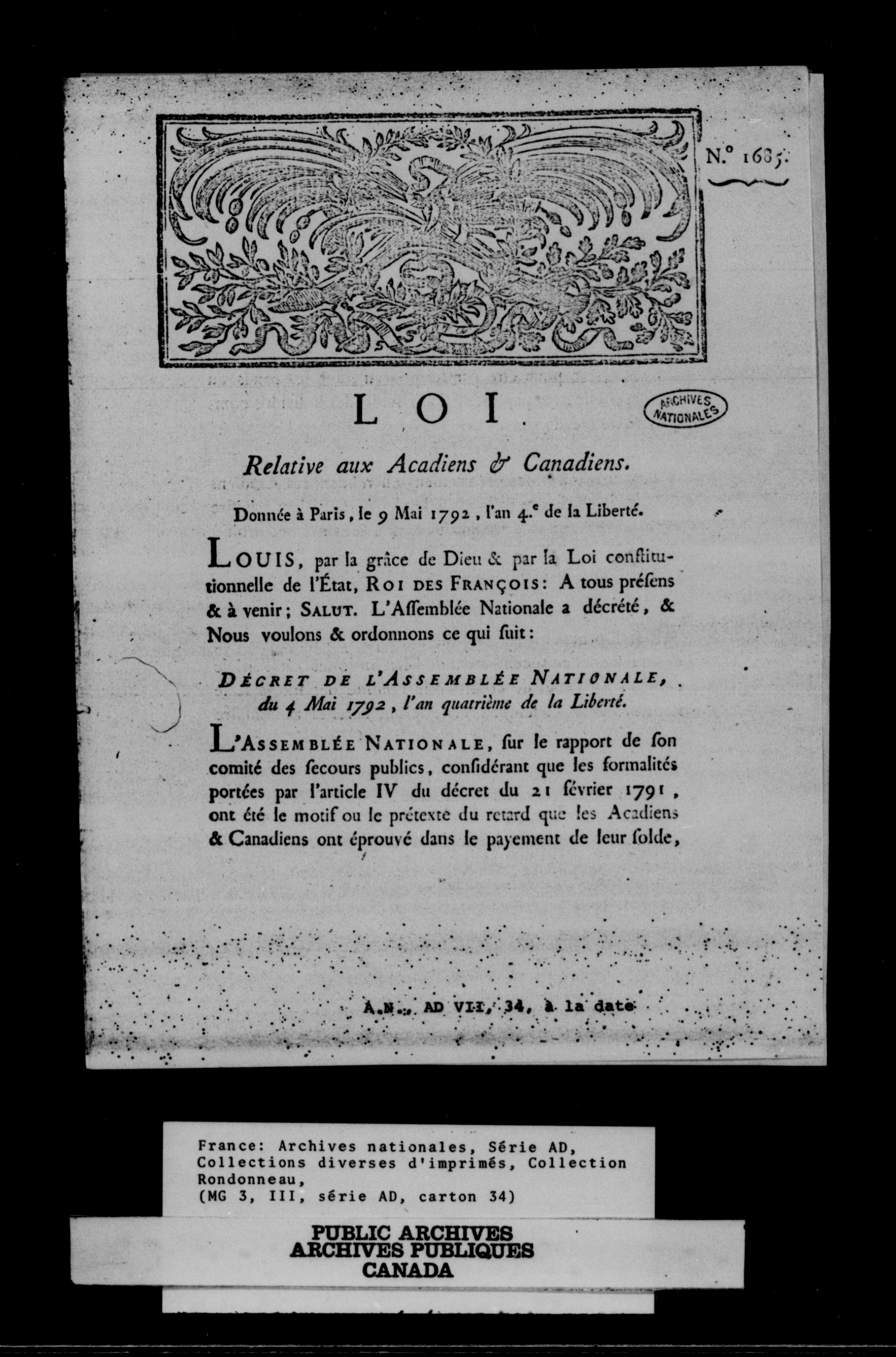 France. Fonds des Archives nationales : Série AD. Archives imprimées. Collection Rondonneau : C-12564