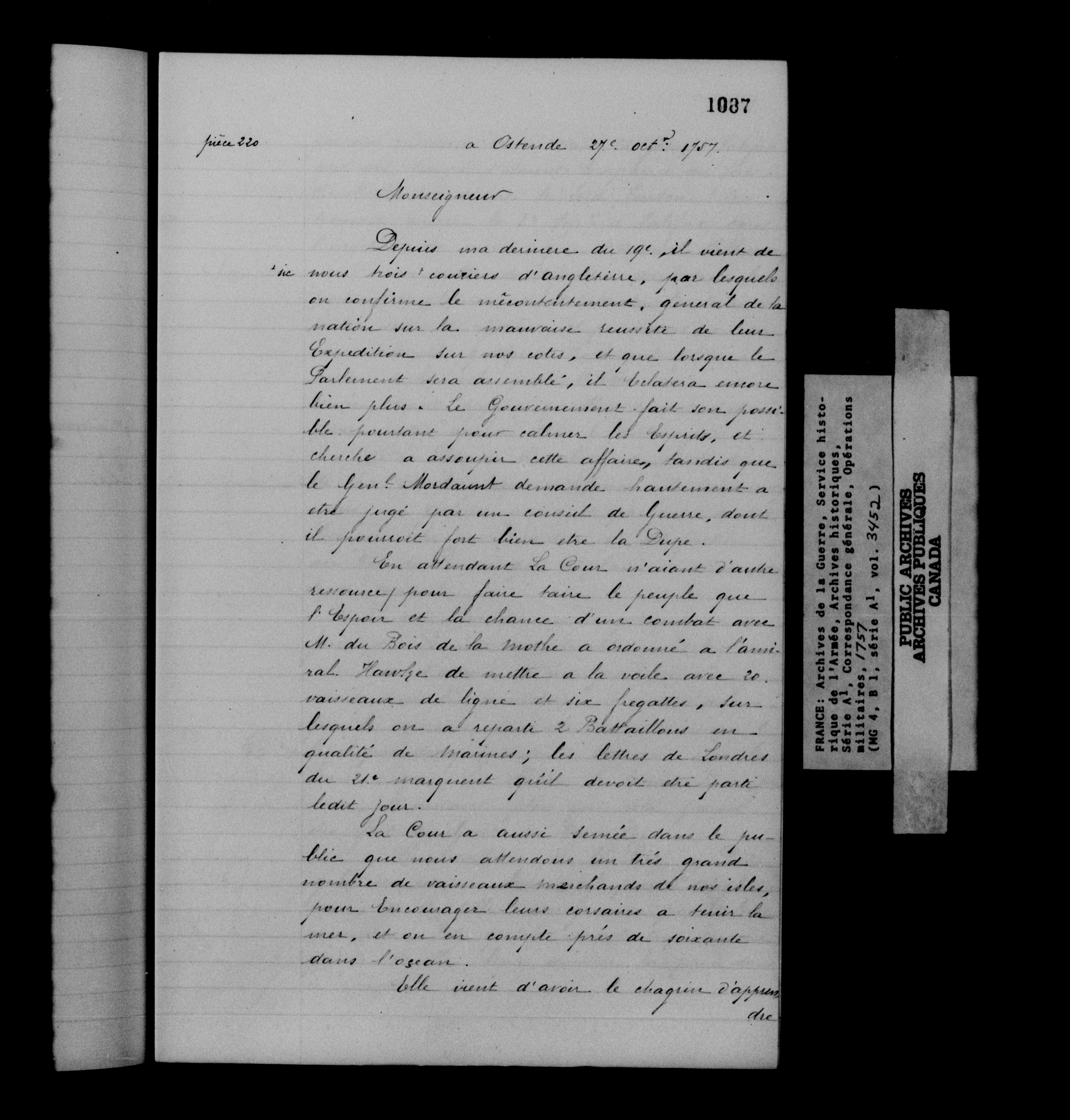 France. Ministère de la Guerre, Service historique de l'Armée, Archives historiques : Série A1, Correspondance générale - 12577