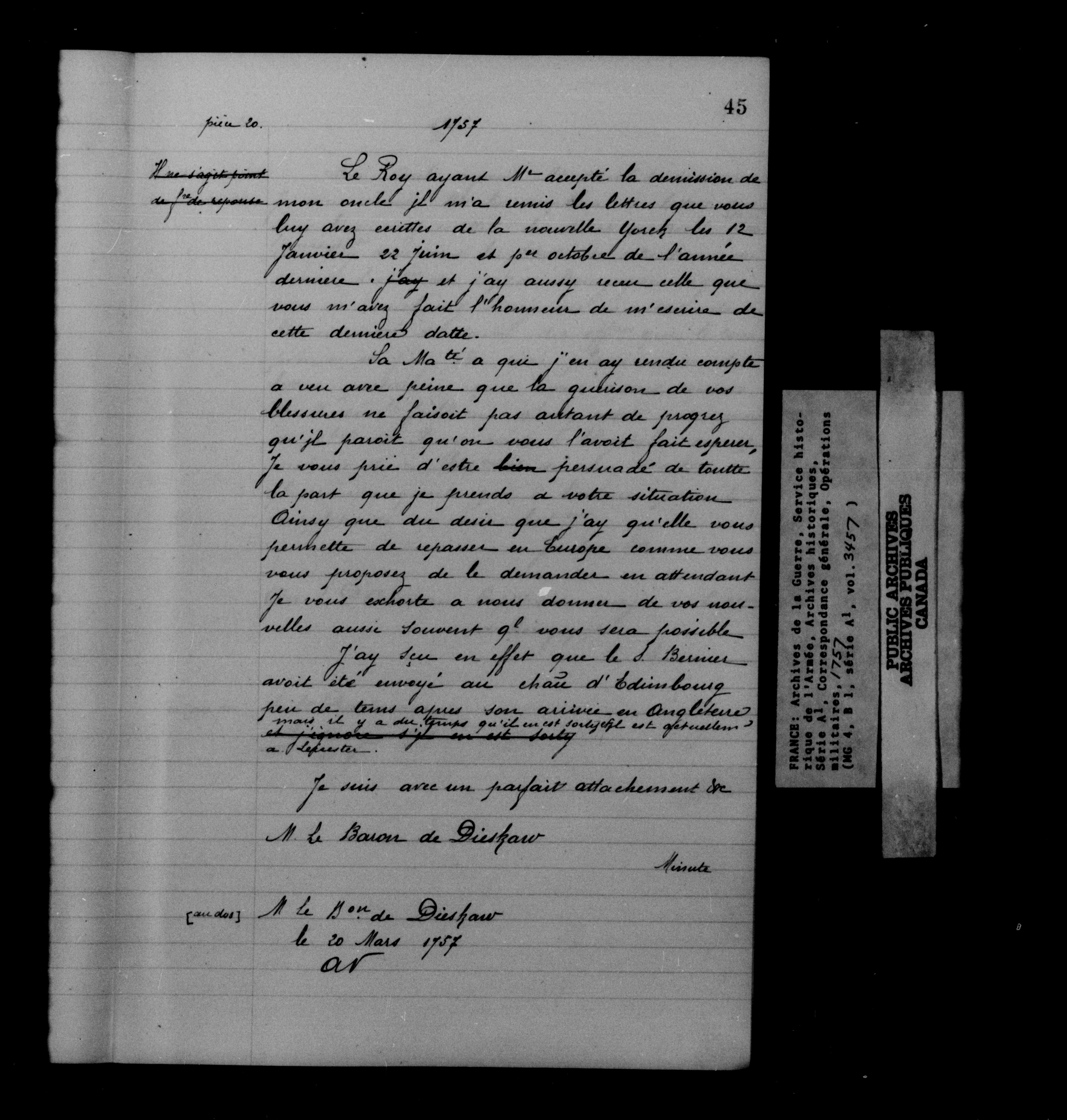 Ministère de la Guerre. Service historique de l'Armée. Archives historiques : Série A1. Correspondance générale : C-12578