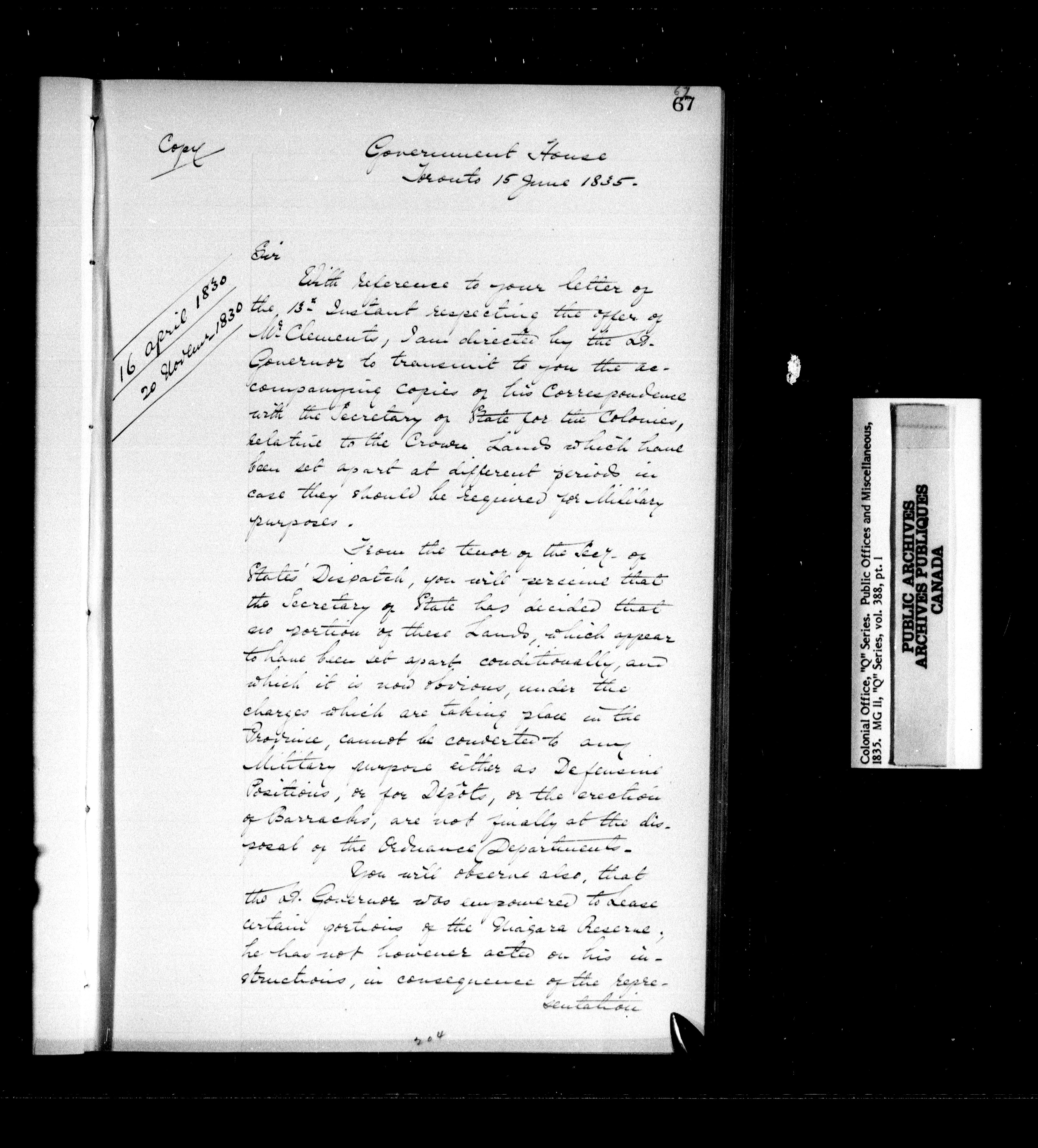 Great Britain : Public Record Office, Colonial Office 42, Canada; Original Correspondence "Q" Series - 12620