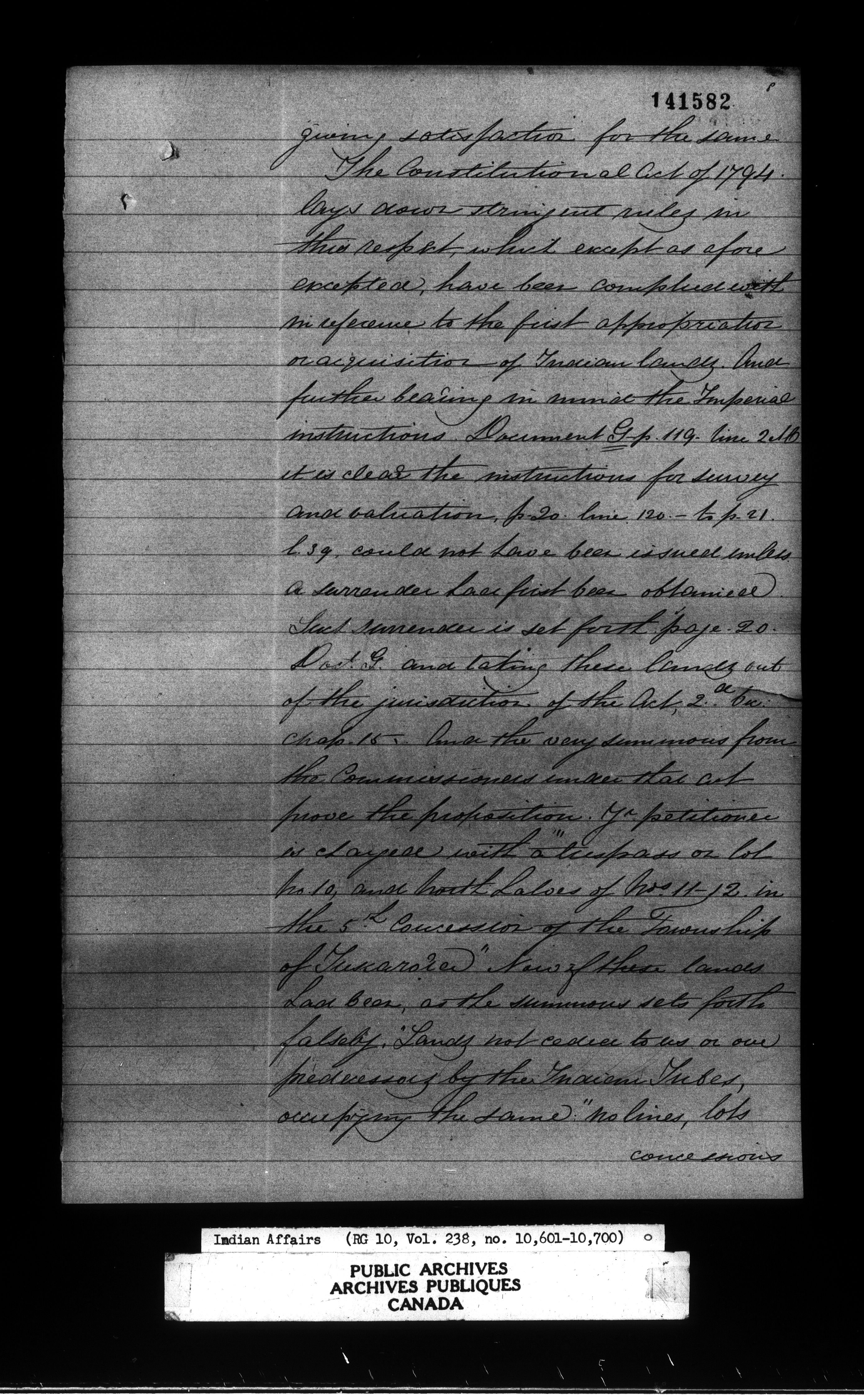 Department of Indian Affairs : Office of the Civil Secretary in the Province of Canada - 12636