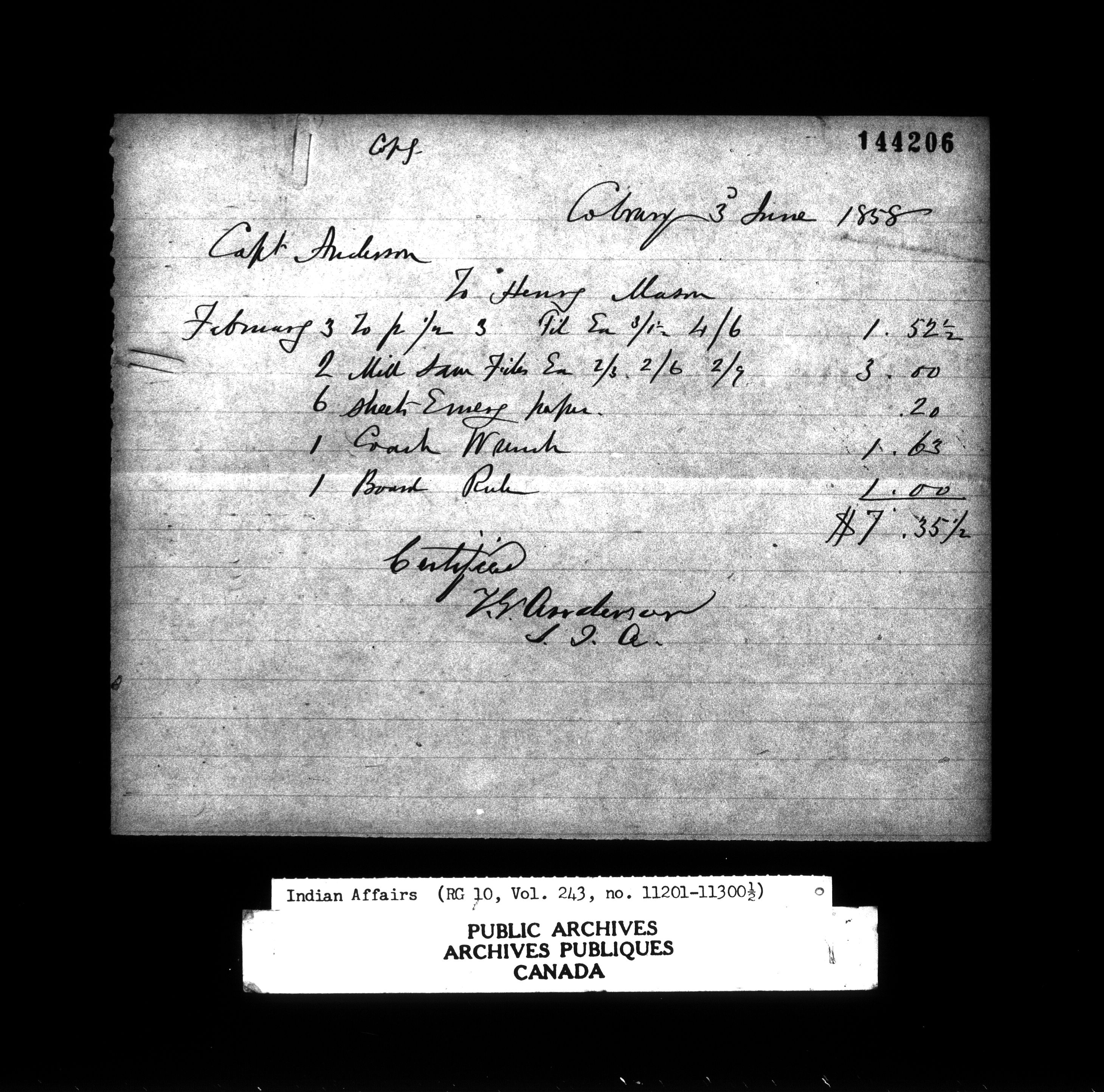 Department of Indian Affairs : Office of the Civil Secretary in the Province of Canada - 12637