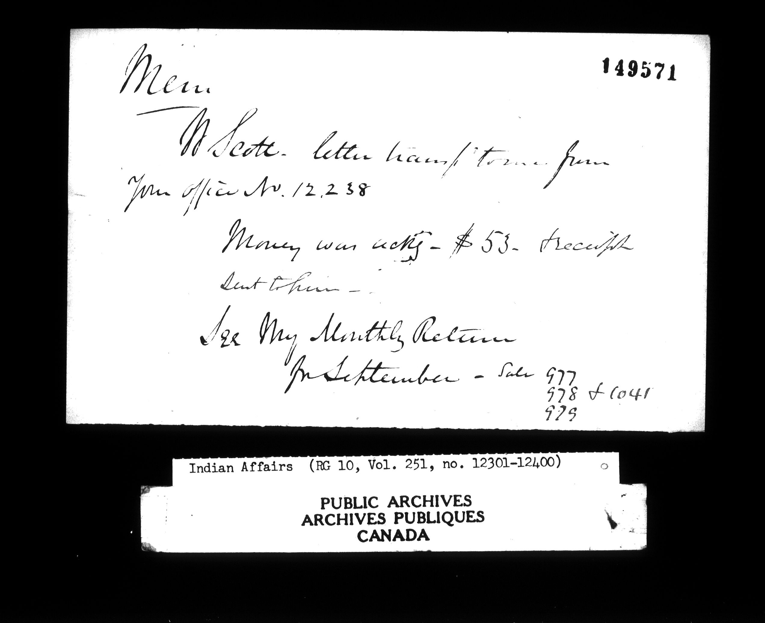 Department of Indian Affairs : Office of the Civil Secretary in the Province of Canada - 12641