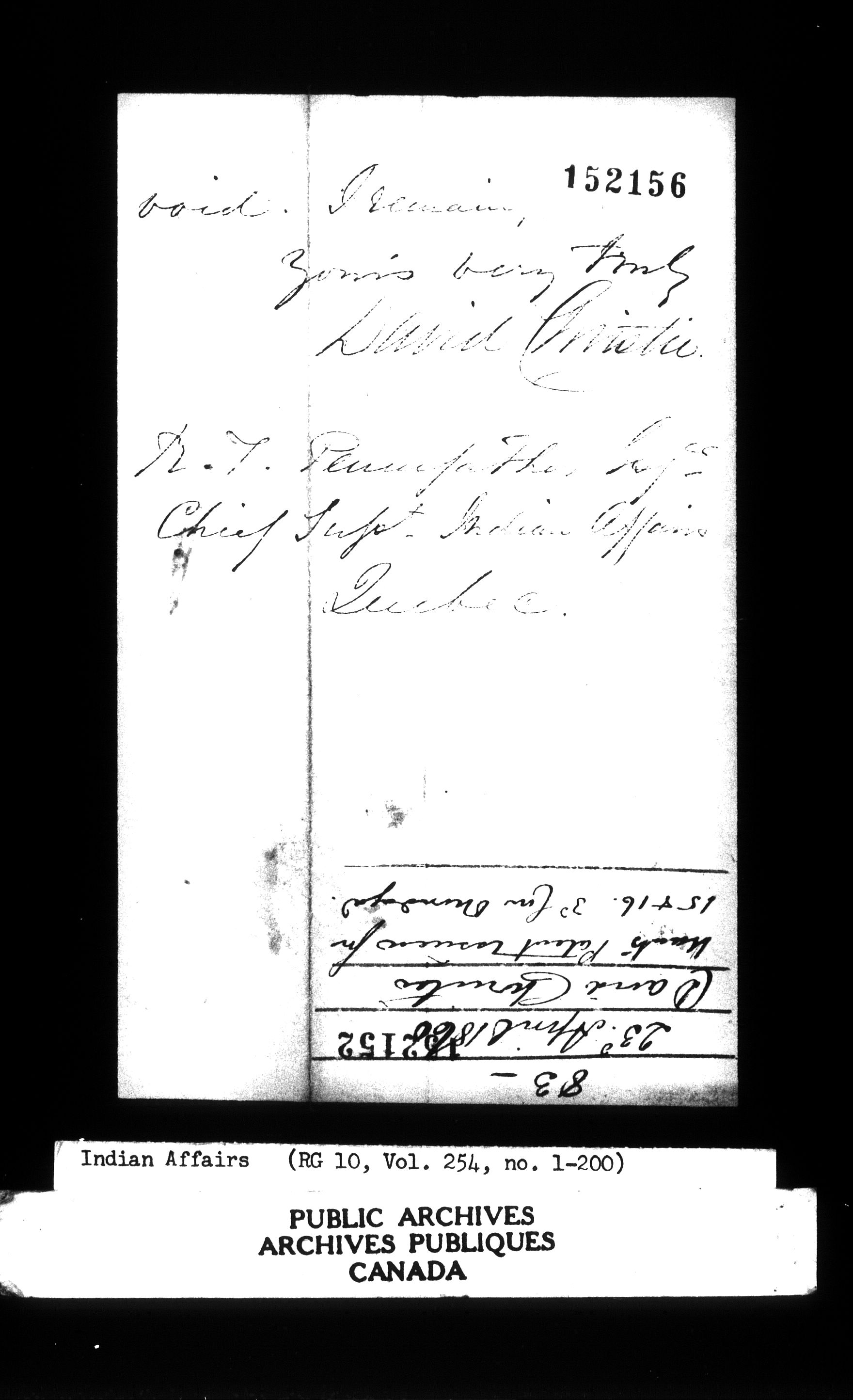 Department of Indian Affairs : Office of the Civil Secretary in the Province of Canada - 12644