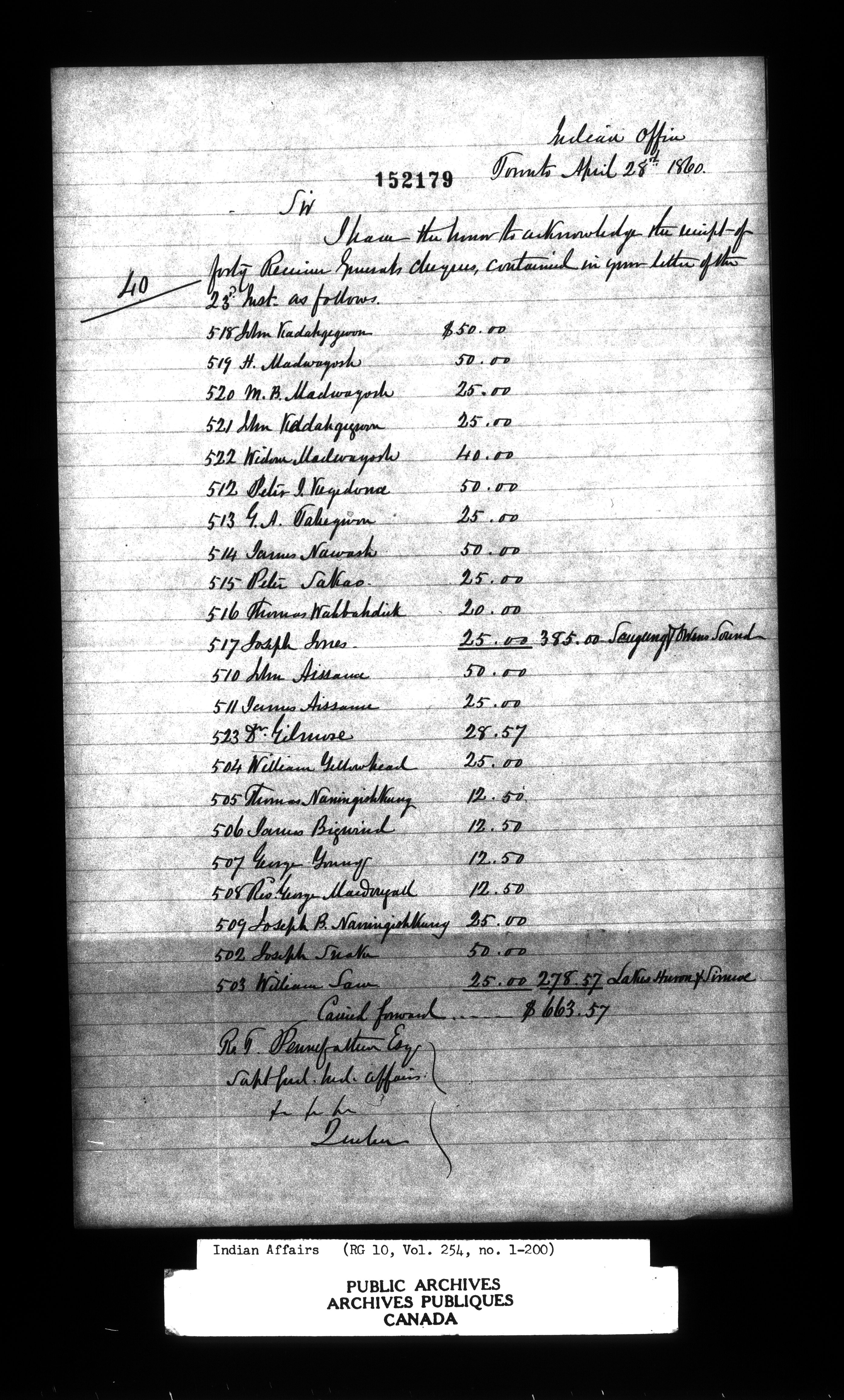 Department of Indian Affairs : Office of the Civil Secretary in the Province of Canada - 12644