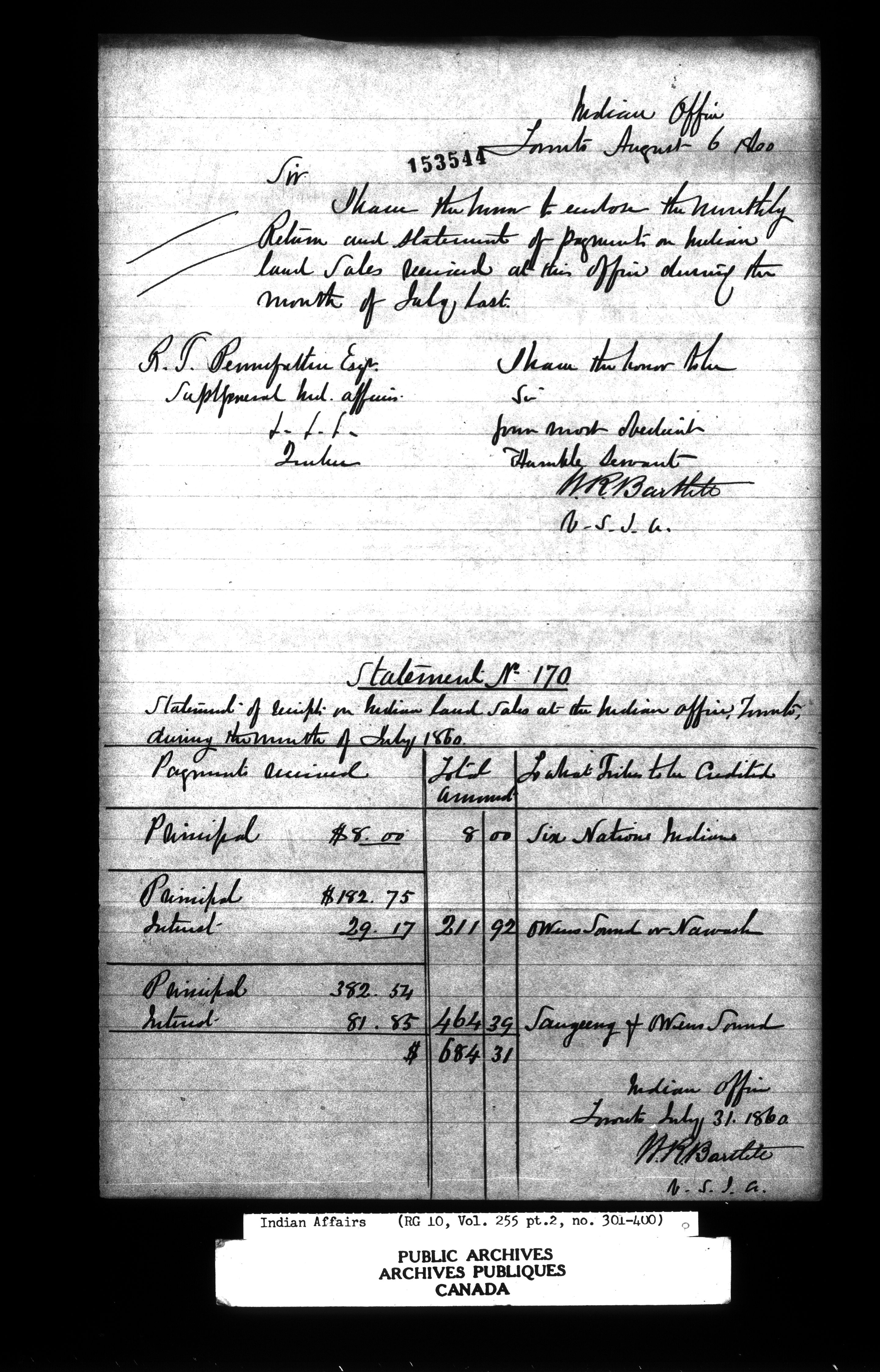 Department of Indian Affairs : Office of the Civil Secretary in the Province of Canada - 12645