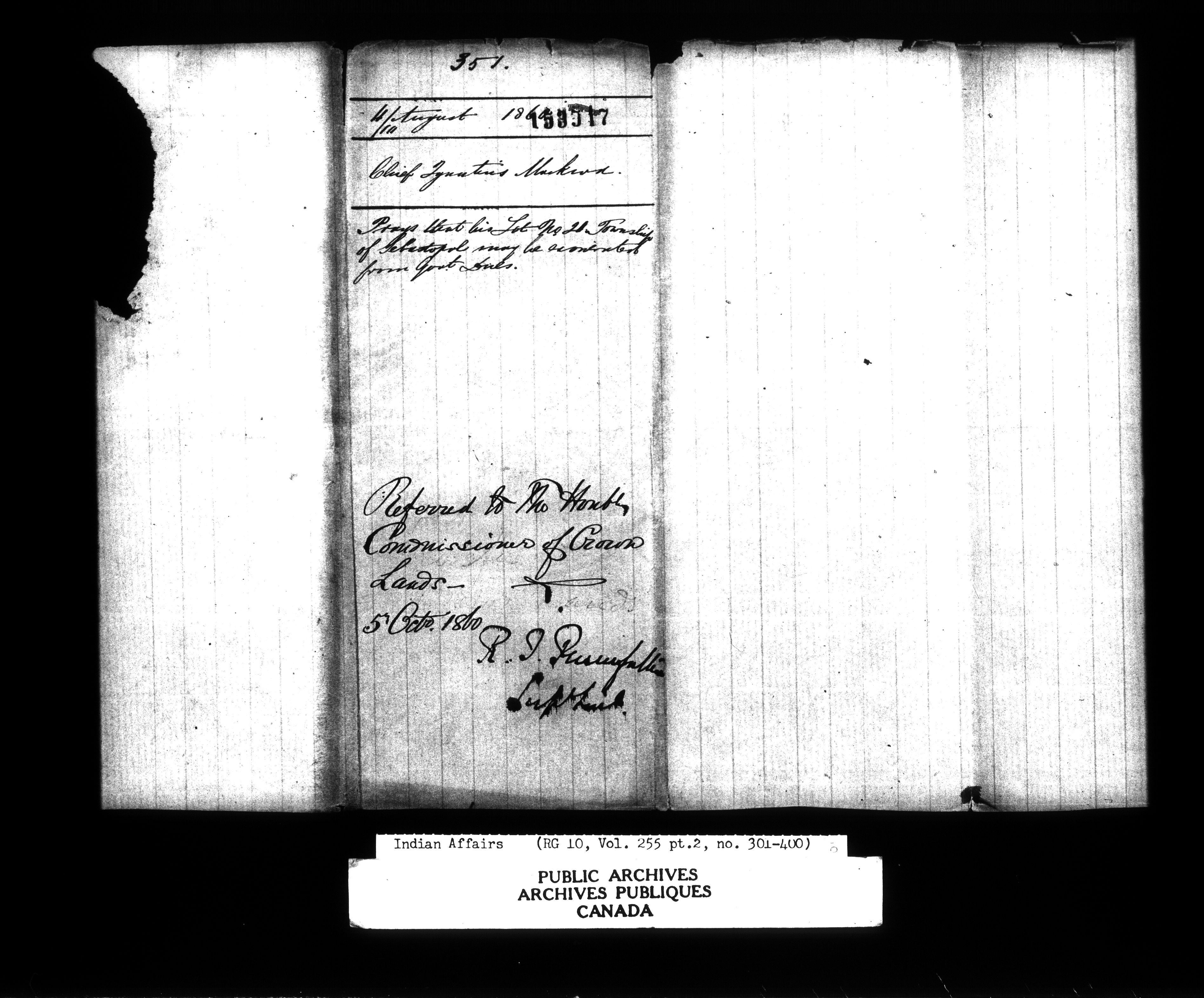 Department of Indian Affairs : Office of the Civil Secretary in the Province of Canada - 12645