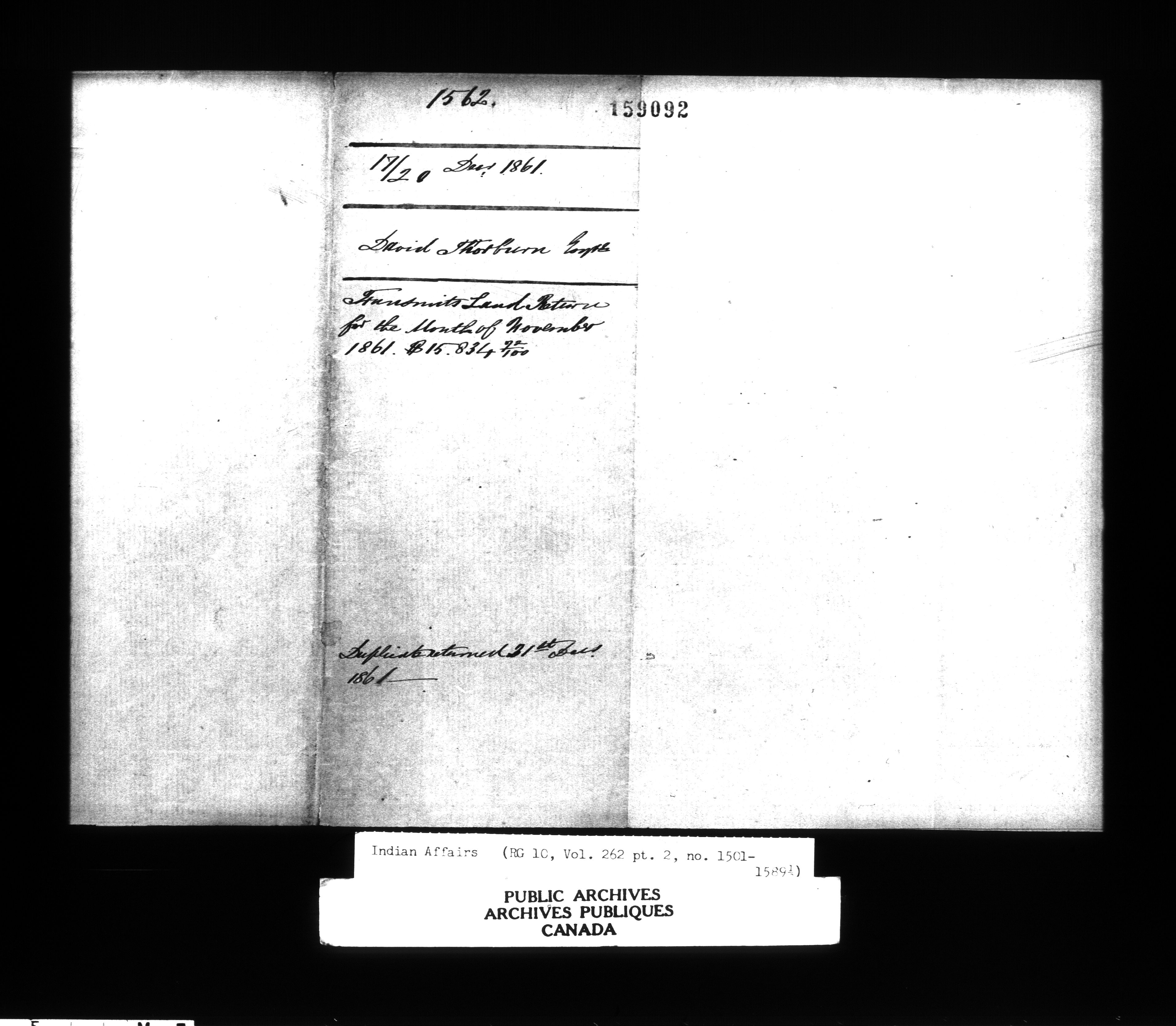 Department of Indian Affairs : Office of the Civil Secretary in the Province of Canada - 12649