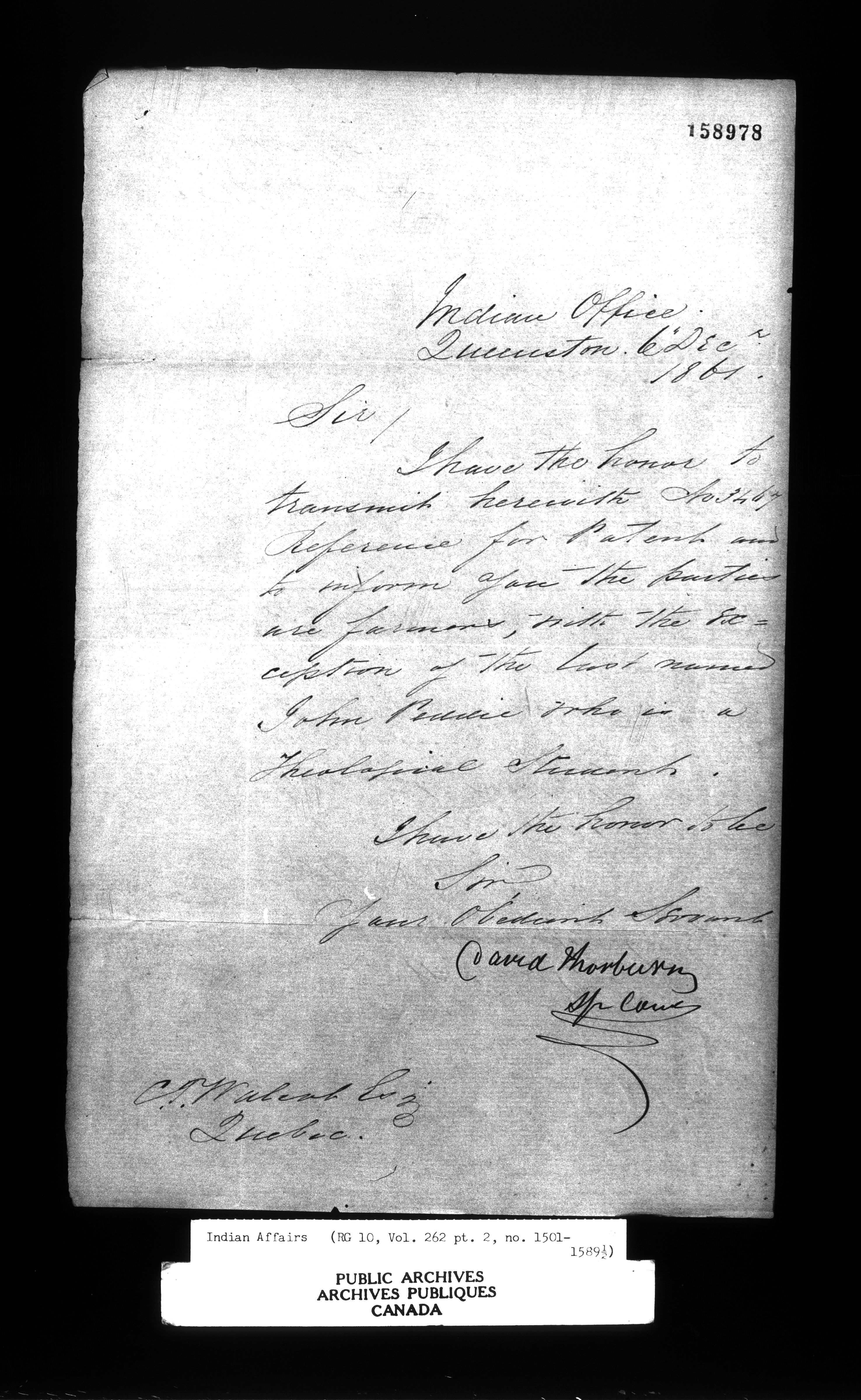Department of Indian Affairs : Office of the Civil Secretary in the Province of Canada - 12649