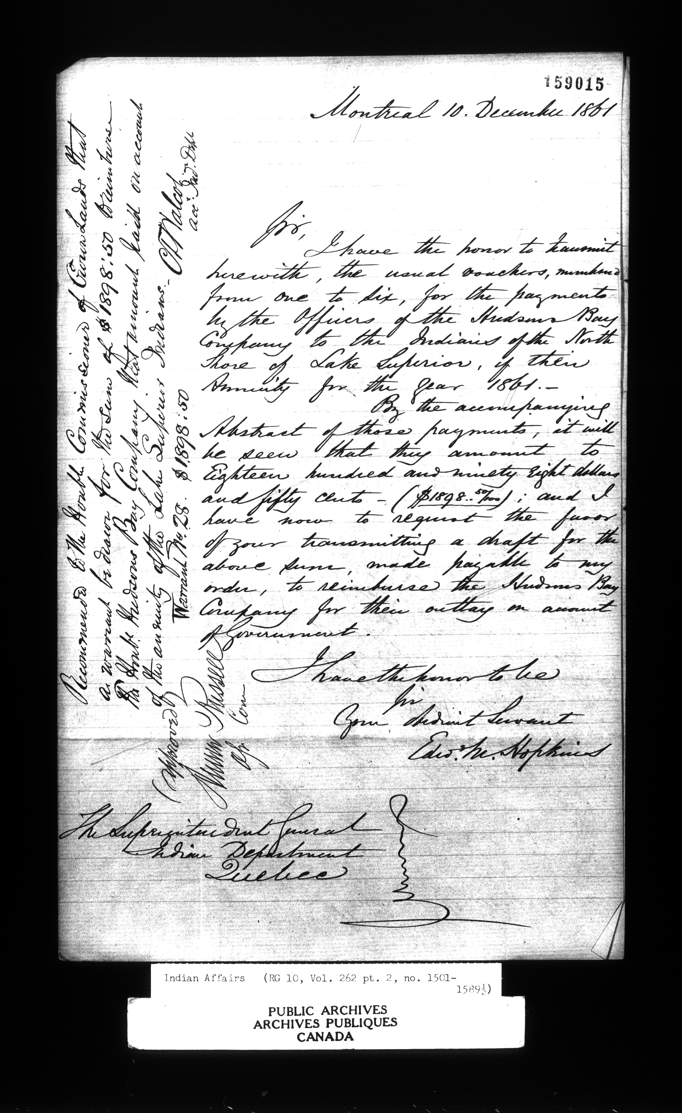 Department of Indian Affairs : Office of the Civil Secretary in the Province of Canada - 12649