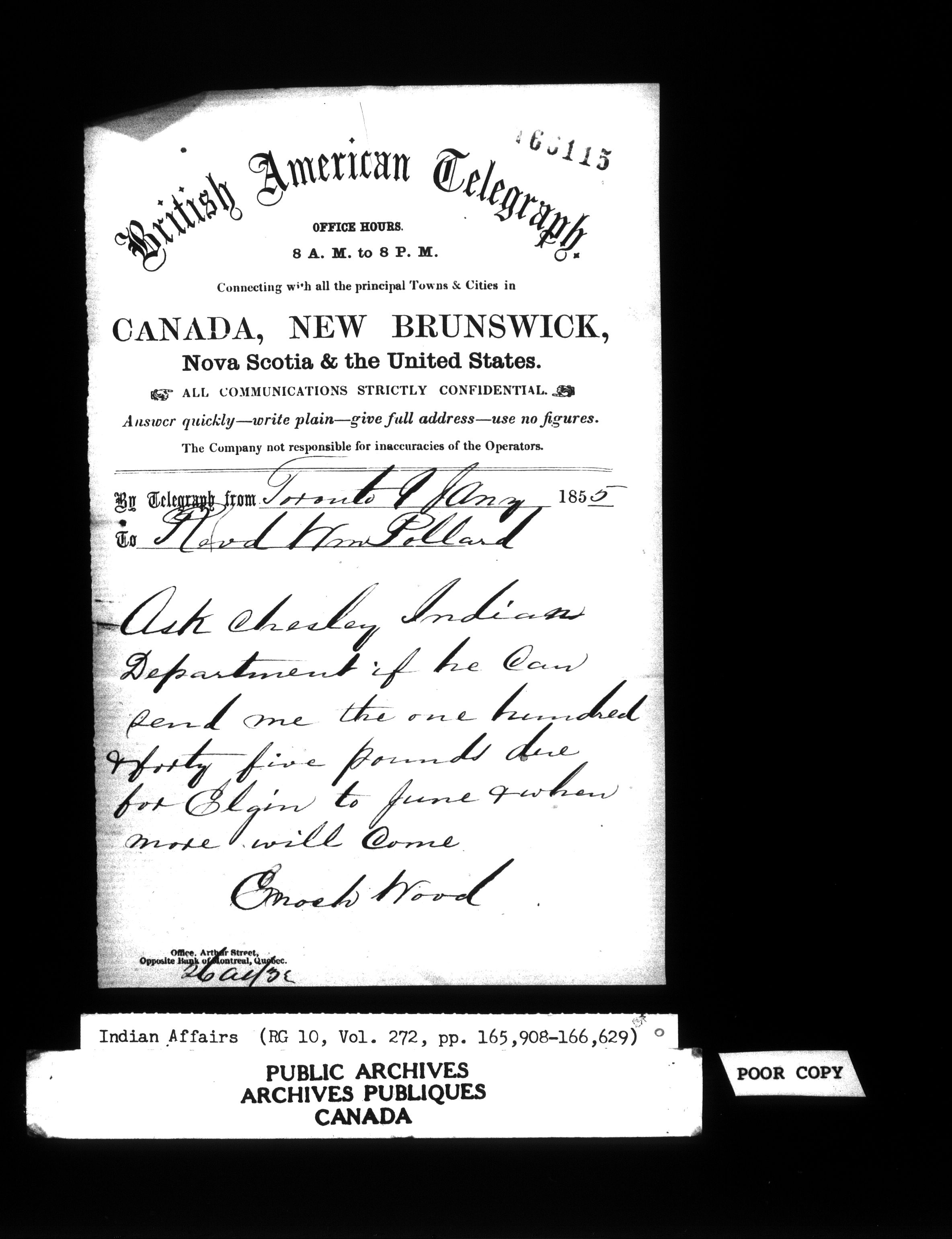 Department of Indian Affairs : Office of the Civil Secretary in the Province of Canada - 12656