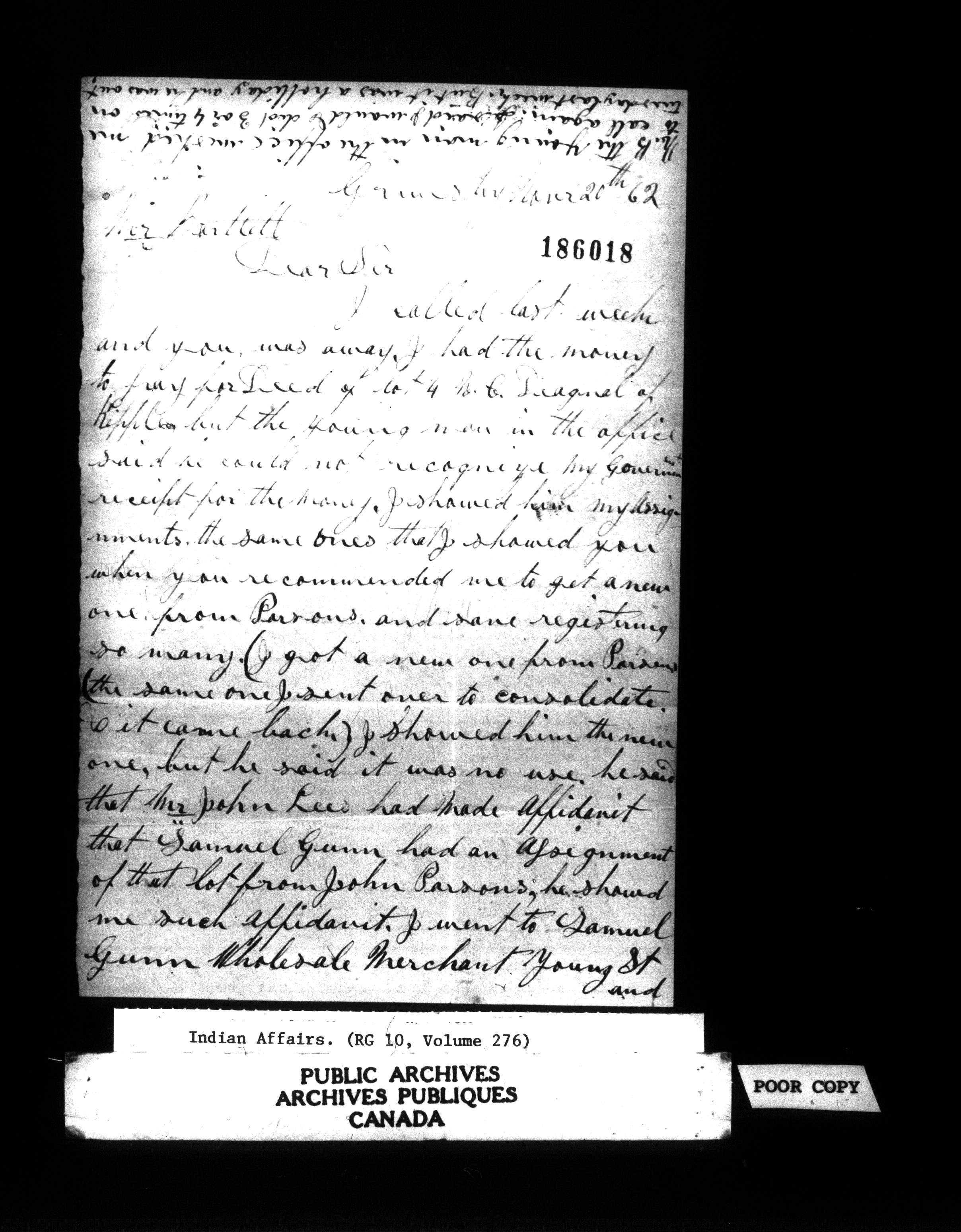 Office of the Deputy Superintendent General of Indian Affairs : Correspondence, 1862-1896 : C-12658